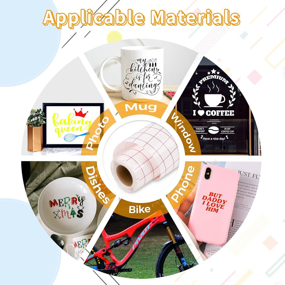 ☁️【EASY TO CUT AND WEED】Transfer Tape for Vinyl are compatible with any electronic craft-cutting machines, allowing you to cut, peel, and weed the vinyl easily and apply your sheets smoothly without the worry of curling or tunneling. Any big or small project, can be easily transferred without residue with our transfer tape.