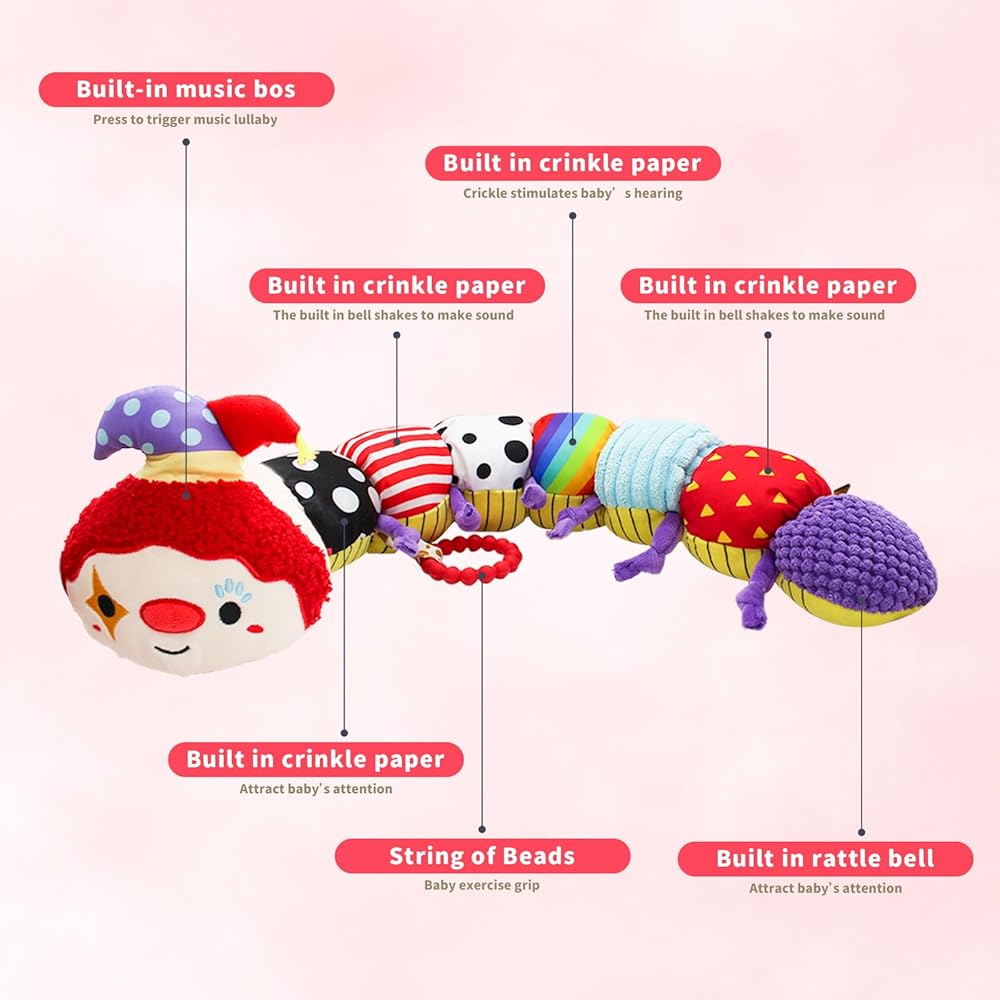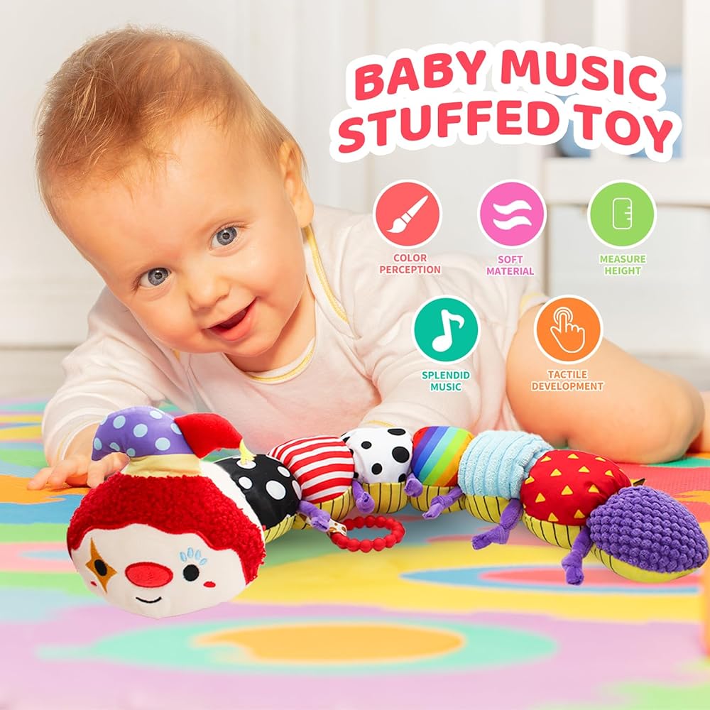 3 IN 1 Baby Activity Toys - Combines the fun of Musical toys, Rattle toys, Animal plush toys into this toy. Providing an all-around sensory experience for babies on a caterpillar toy.