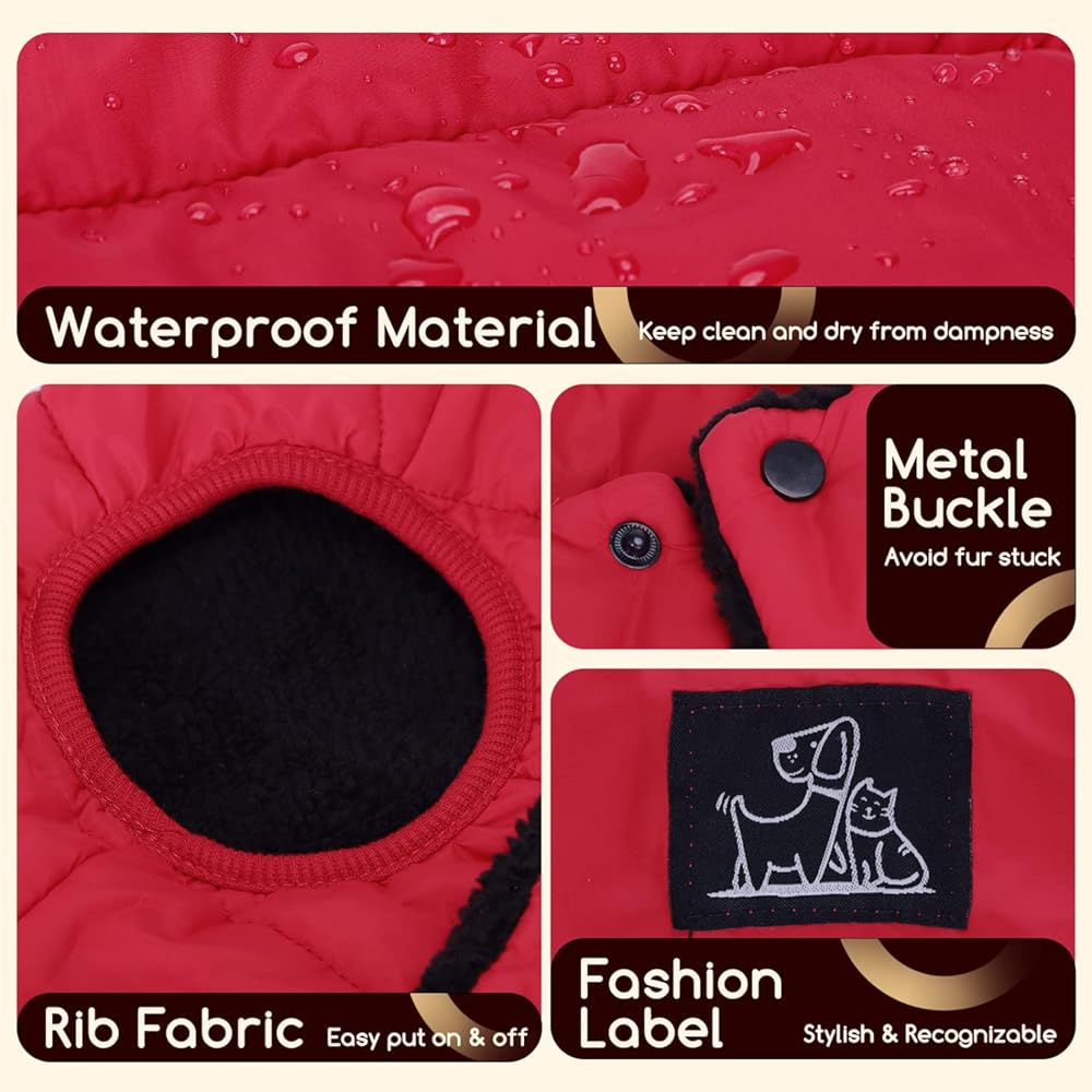 ✿ SNAP BUTTON & LEASH HOLE: Nobleza small dog jacket vest fastens with snap buttons on the belly side, easy to put on and take off. Compared with the zipper design, snap buttons can avoid pets' fur from getting snagged or caught. In addition, there is a leash hole in the back of the dog cold weather coats to run the leash through, suitable for outdoor walking.
