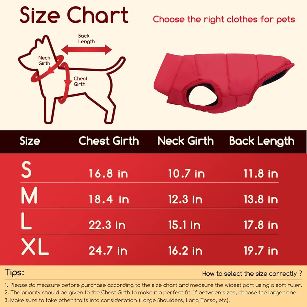 ✿ MEDIUM SIZE: √ Back Length: 13.8 inch; Neck Girth: 12.2 inch; Chest Girth: 18.9 inch. In order to ensure your pet has a more snug and comfortable fit, please carefully measure your dog around the neck, chest and from back of neck to the base of tail for back length. Refer to the size chart and choose the optimal size to keep your fur-friend cozy and cute all winter long!