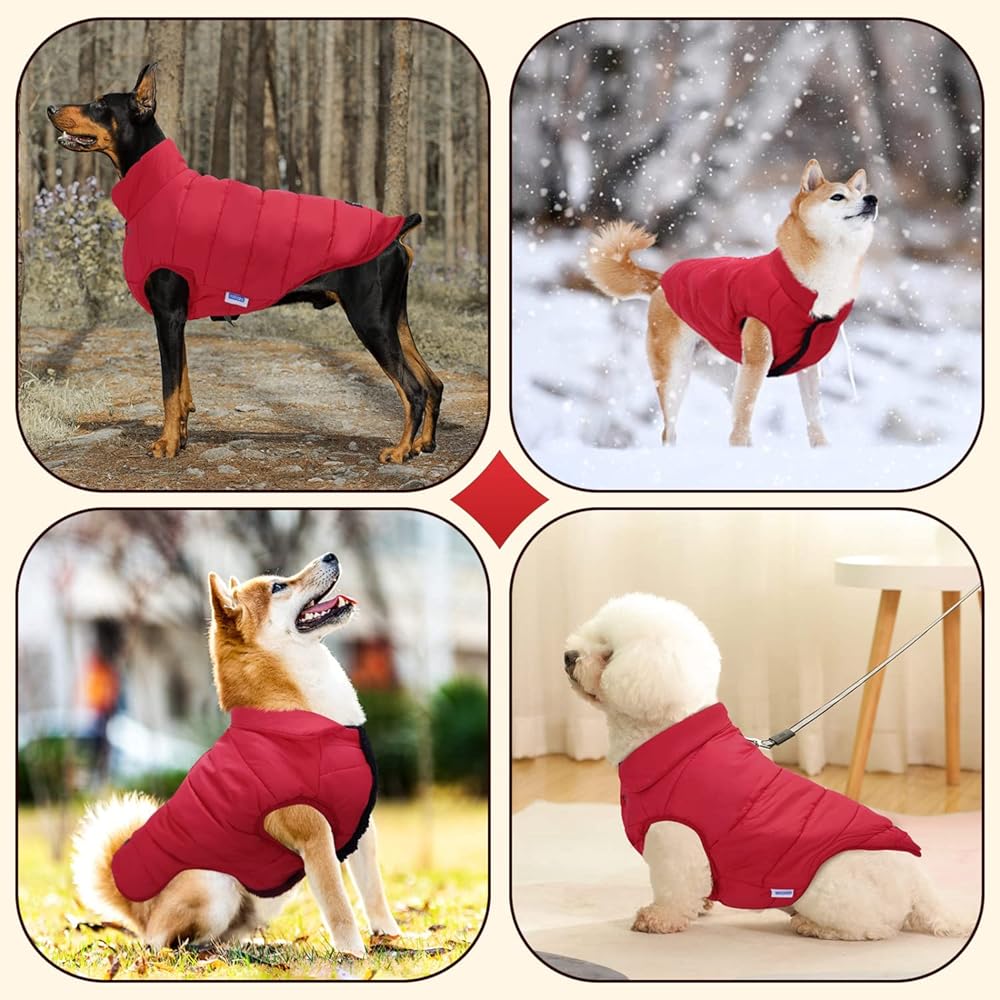 ✿ WEATHERPROOF & WARM: The outer layer of Nobleza dog snow coat is waterproof and windproof, which not only keeps the rain off, but also protects dogs from the chilling effect of the wind. Coupled with comfy soft furry liner, the dog winter coat can keep them super warm on the coldest days. Just put on dog coats for your dog to stop the cold and wet from getting in the way of your and your dog's adventures!