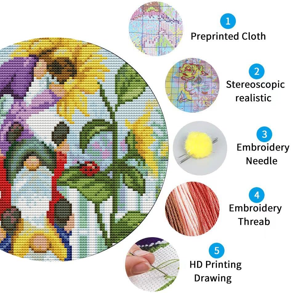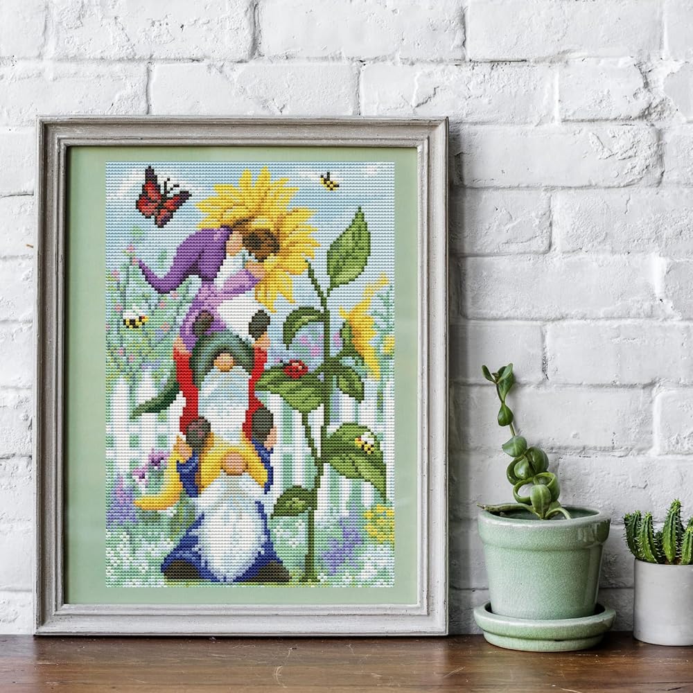 2 Pack Stamped Cross Stitch Kits for Adults Beginners,Cartoon Gnome Counted Cross Stitch Kits,Full Range of Needlepoint Stamped Kits Needlecrafts Arts and Crafts Embroidery for Home Decor,12"x16"