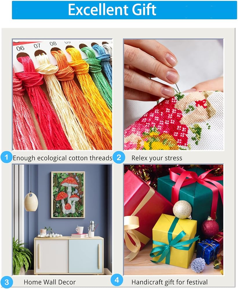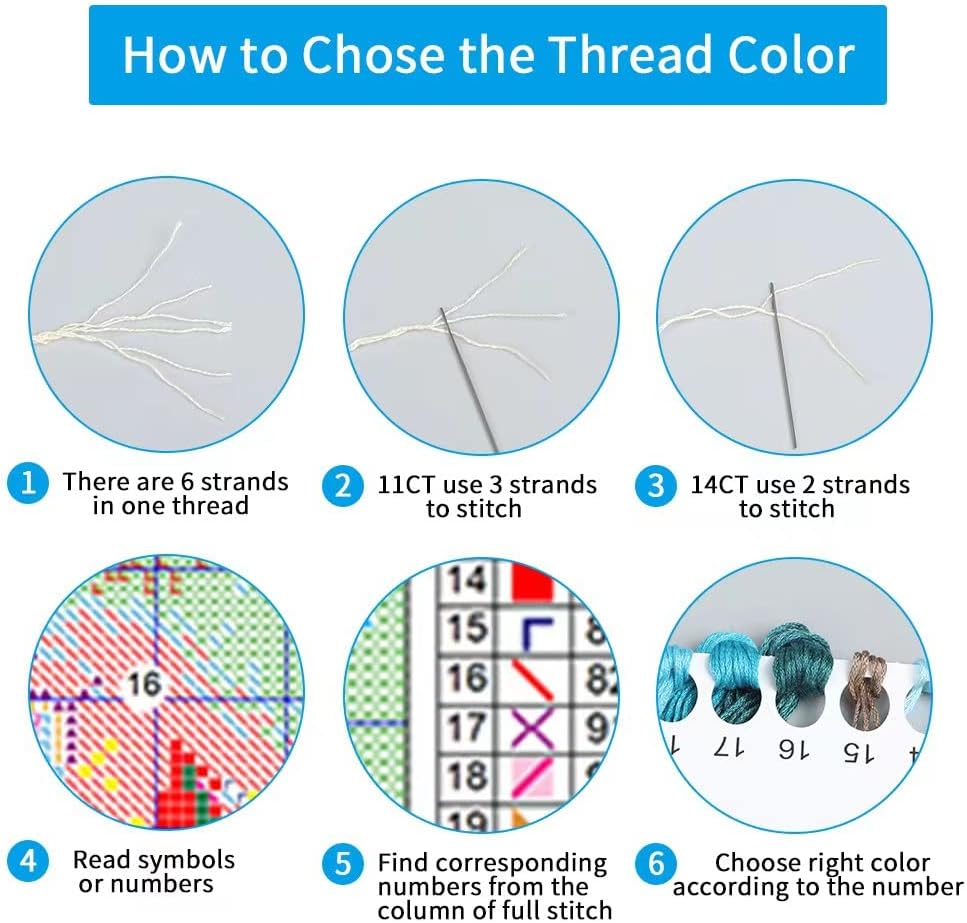 【PACKAGE】:4 Packscross needlepoint stitch kits,each piece is individually wrapped with it's own set of tools.11-count natural embroidery clothX1, all color cotton threadsX1,3 needle and English instructions X1. We provide 30% more threads than enough.It comes with all of the necessary items to help you finish the cross stitch! Note:For 11CT cross stitch, please use 3 strands of thread and 2 strands for reverse stitching.