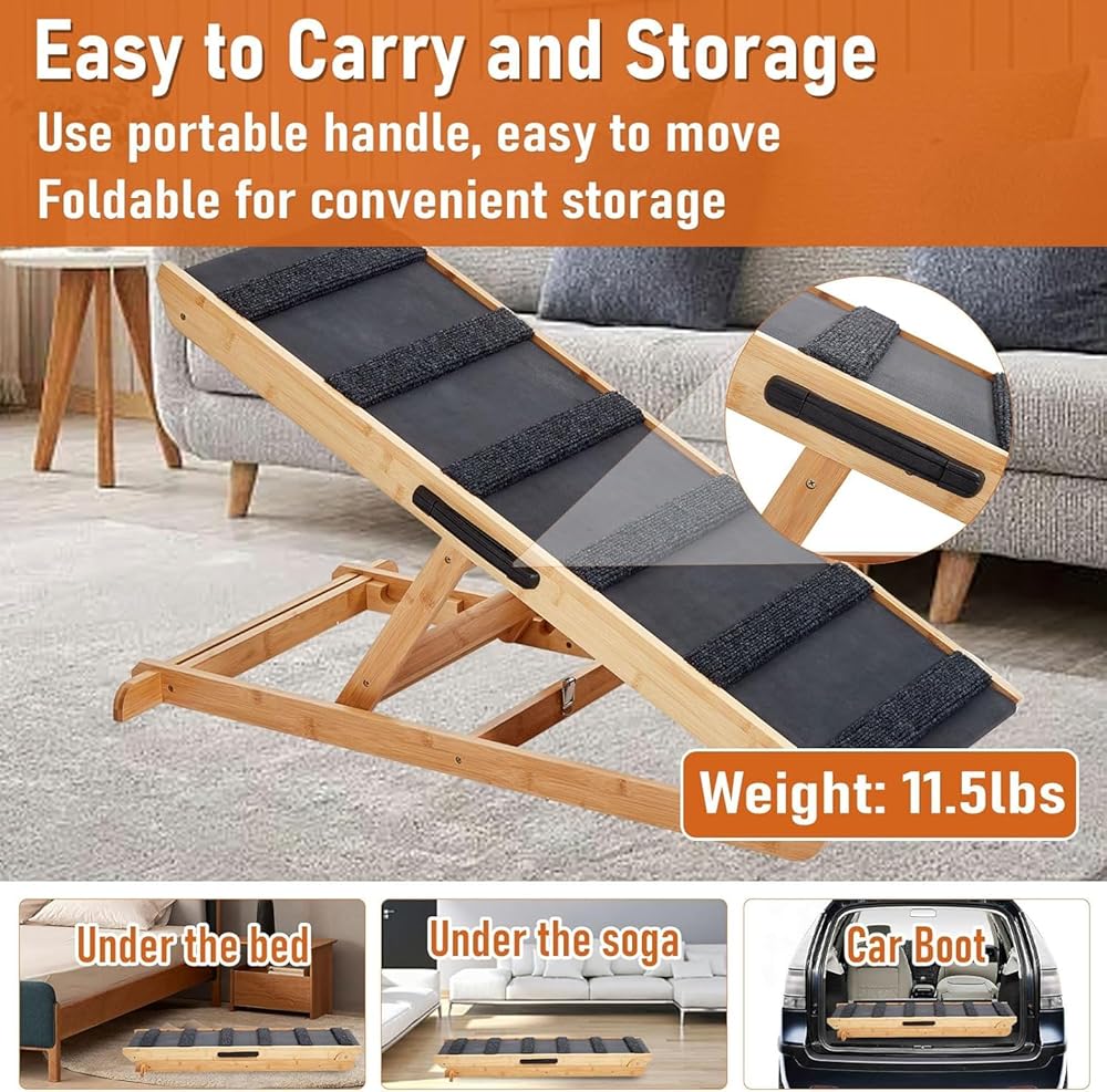 【PORTABLE & SPACE-SAVING】 - Our dog bed ramp is designed for convenience. It's foldable, making it easy to store under the couch or in your car's trunk. Take it with you wherever you go!