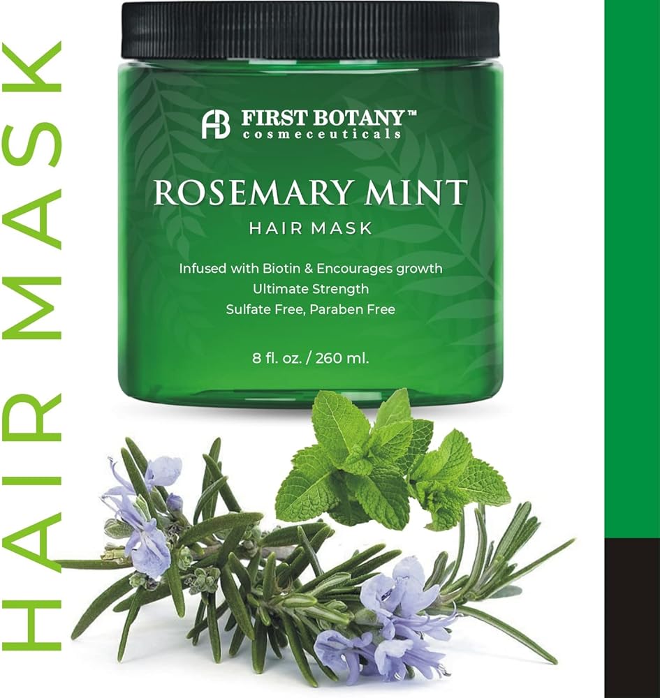 First Botany, Rosemary Mint Biotin Mask - Restorative Deep Conditioning moisturizer w/rosemary oil, for Dry Damaged Hair and growth, Sulfate Free treatment & hair care 8 oz