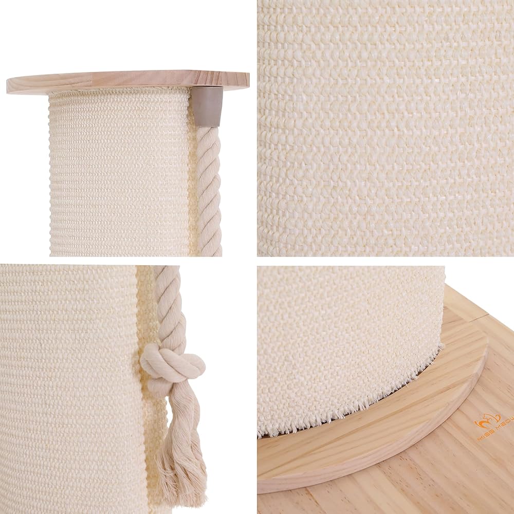 Premium Material: Miss Meow scratching post is made of 100% natural sisal rope and wood, non-toxic, non-irritating odor, and cat-friendly.