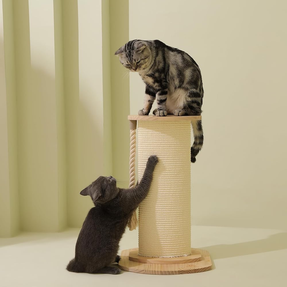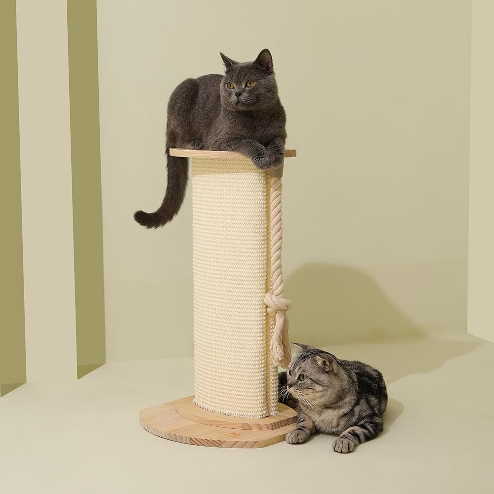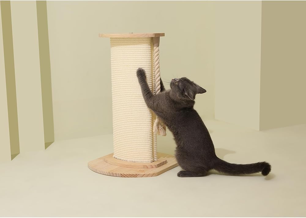 Natural Sisal: The 23-inch high natural sisal cat scratching post is made of high-quality, natural sisal material that is gentle on your cat's paws and completely safe for them to scratch and play with.
