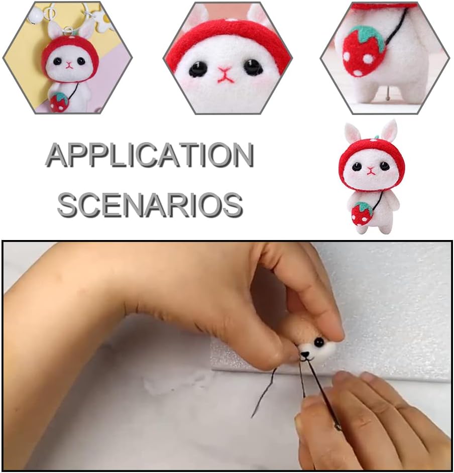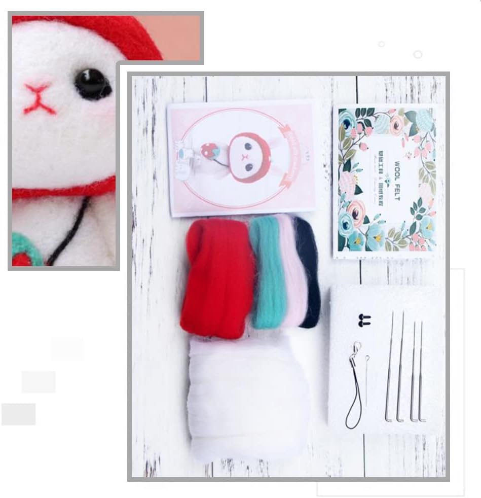 【FELTING KITS for BEGINNERS ADULT】You will get 1 figures making material bag, 1 x instructions, 1 x black plastic eyes, 4 x felting needles, 1 pack doll making wool roving,felting mat, 1 phone lanyard.