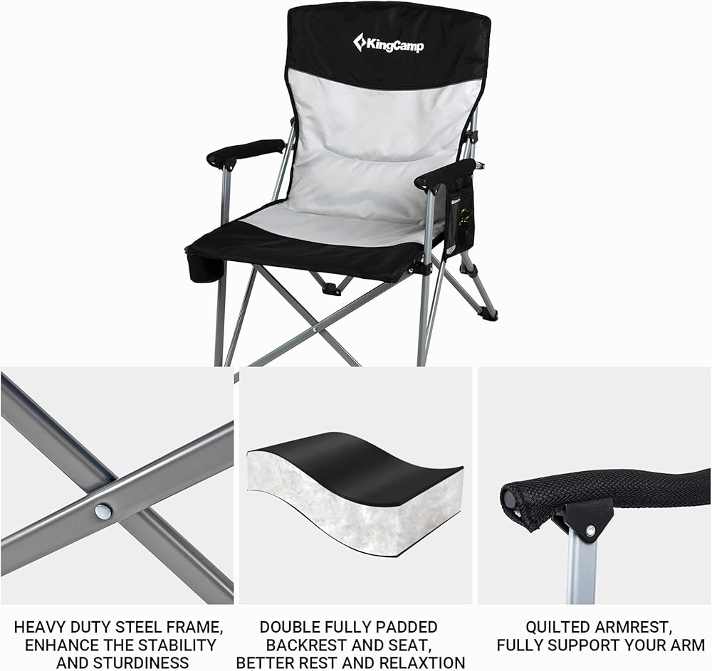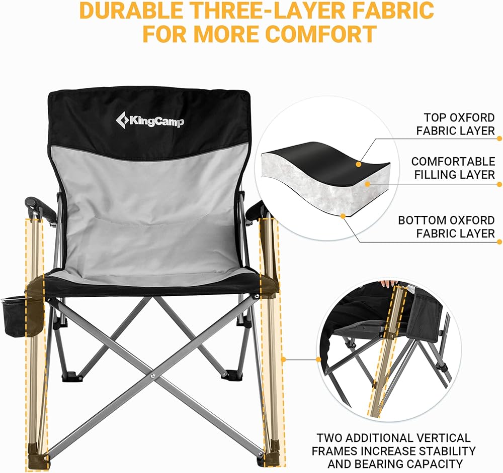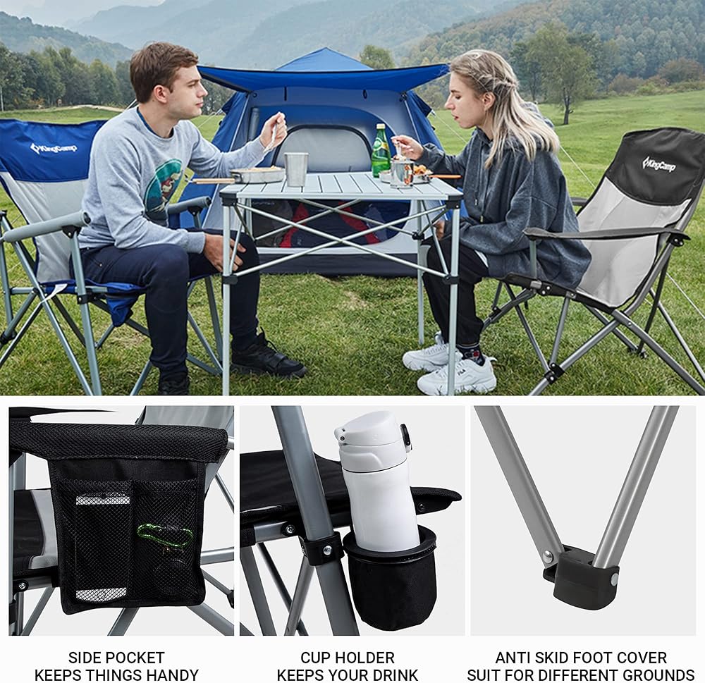 KingCamp Oversized XL Camping Chair, Heavy Duty 500lbs Folding Couch for Adults, Padded Large Comfortable Sofa Seat with Cooler Bag Cup Holder for Outdoor Sports Fishing Patio Lawn