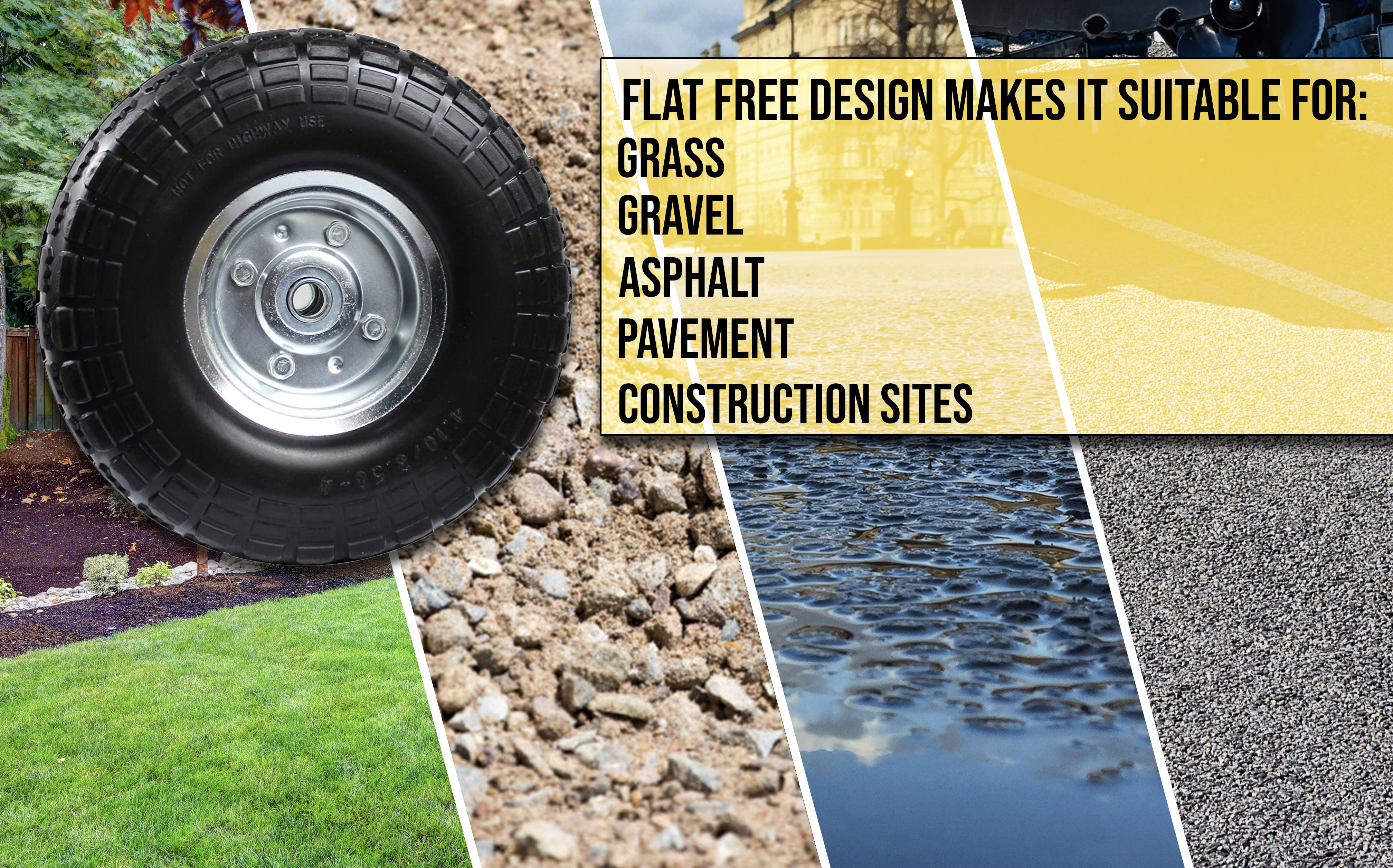 Compatible as a replacement tire for garden carts, sack trolleys, and hand trucks.