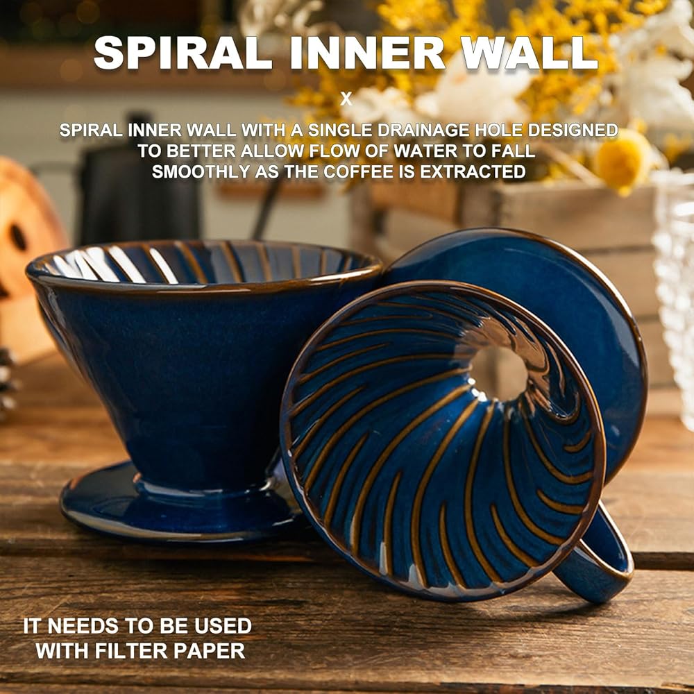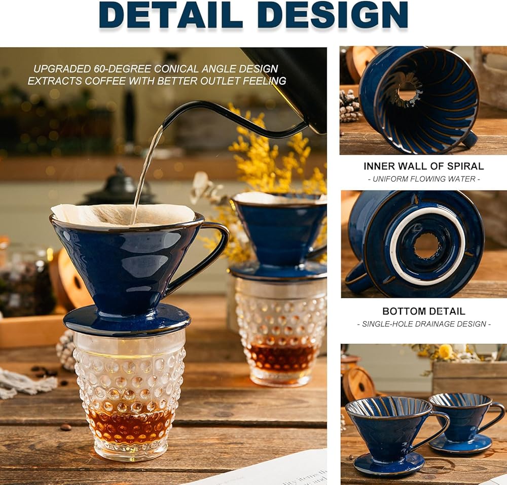 Ceramic Coffee Dripper Filter 01 Ceramic Pour Over Coffee Maker,Hand Drip Cone Coffee Filter,Portable Pour Over Coffee Maker Set For Home Baristas(Blue)