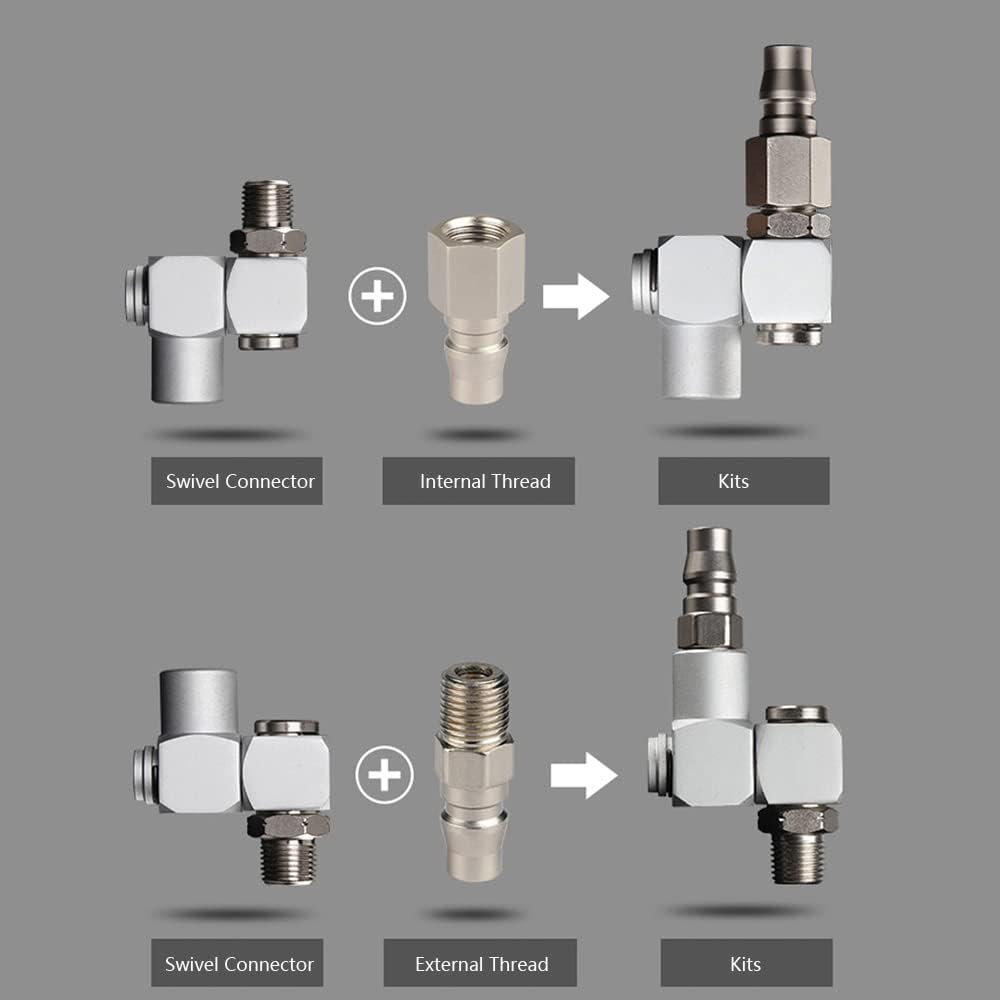APPLICATION: 4 pieces in package. The swivel air hose connector is perfect for pneumatic air tools such as grinders, sanders, glue guns, drills, and etc.