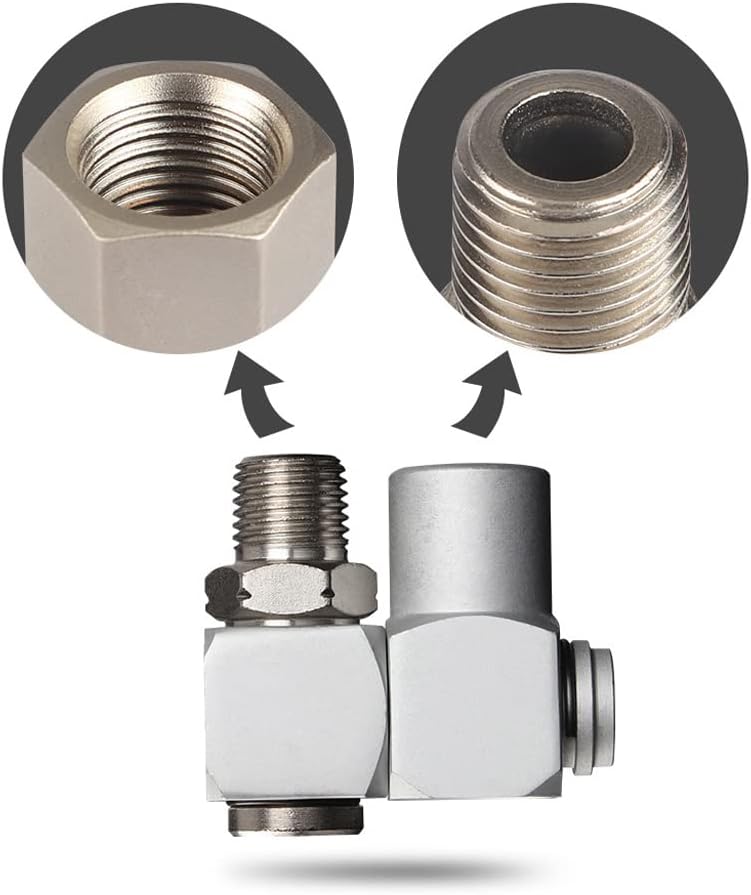 Air tool swivel fitting joint is made of aluminum, which is heat-resistant and corrosion-resistant, with a maximum pressure of 150PSI, fine workmanship and durability.