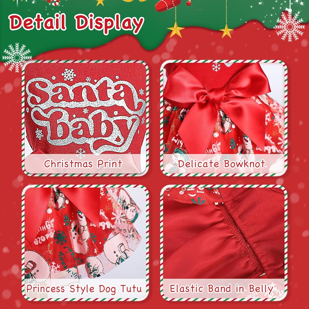 Dog Christmas dresses for small dogs glitter printed font and tulle layer and cute Christmas elements. Present the cuteness in the dress, soft comfortable a Christmas must-have gift.