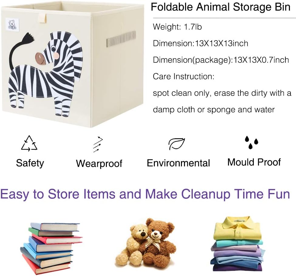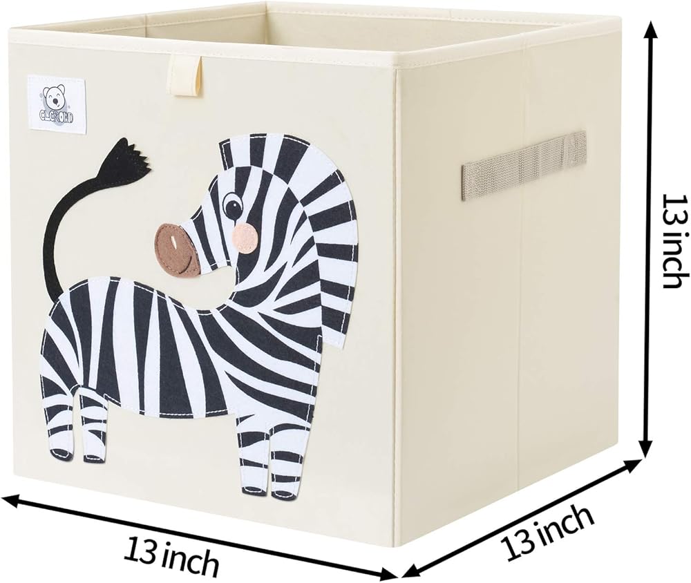 Animal Theme Design: Measures 13 x 13 x 13", CLCROBD kids storage cubes with animal theme felt applique fit in most cube shelf organizers and cubbies, perfect cube shelves decoration for any kids room, playroom, nursery and make cleanup time fun.