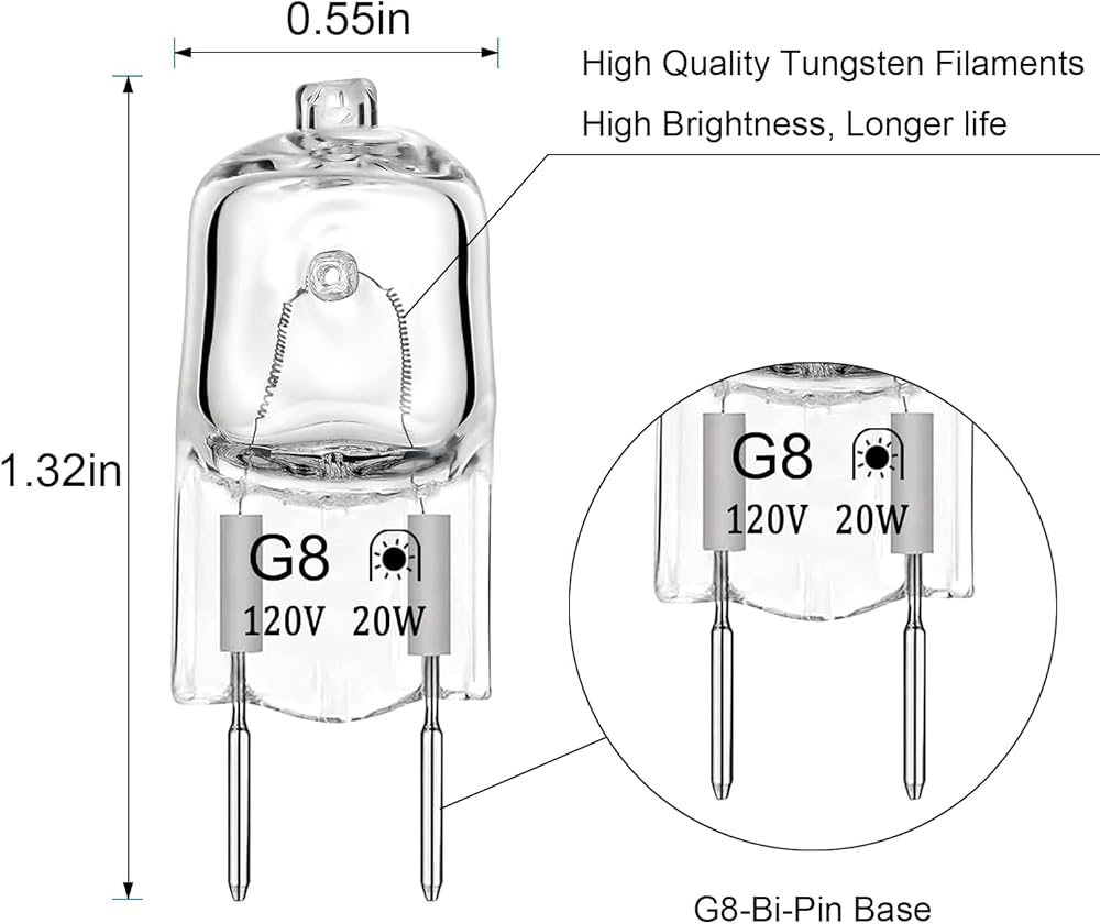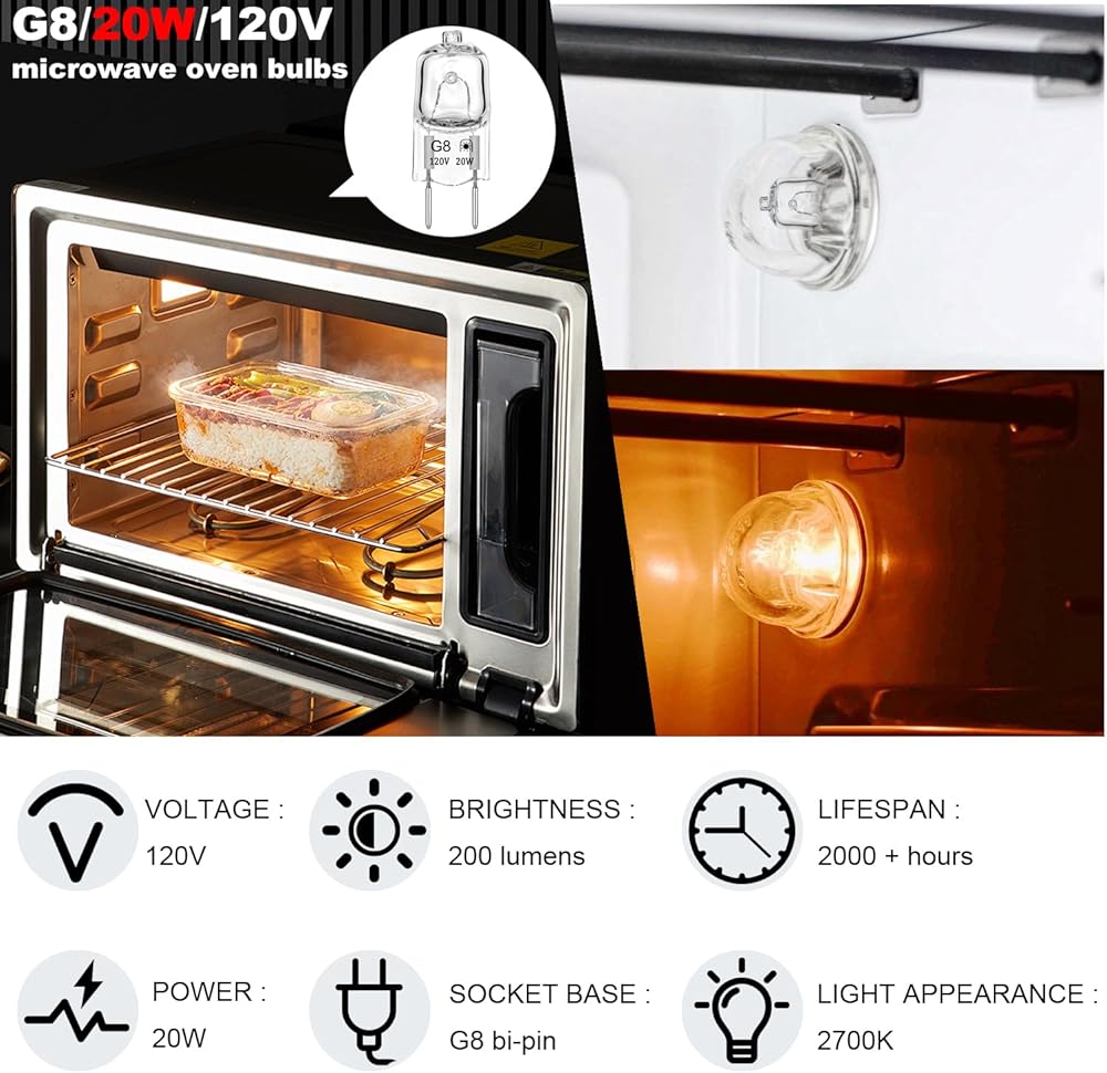Light Bulb for GE Microwave Oven, Halogen Light Bulb Fits for GE Samsung Kenmore Elite Maytag Over The Stove Range Microwave, G8/20W/120V Night Light/Stove Light Bulb, Replaces WB25X10019, 2 Pack