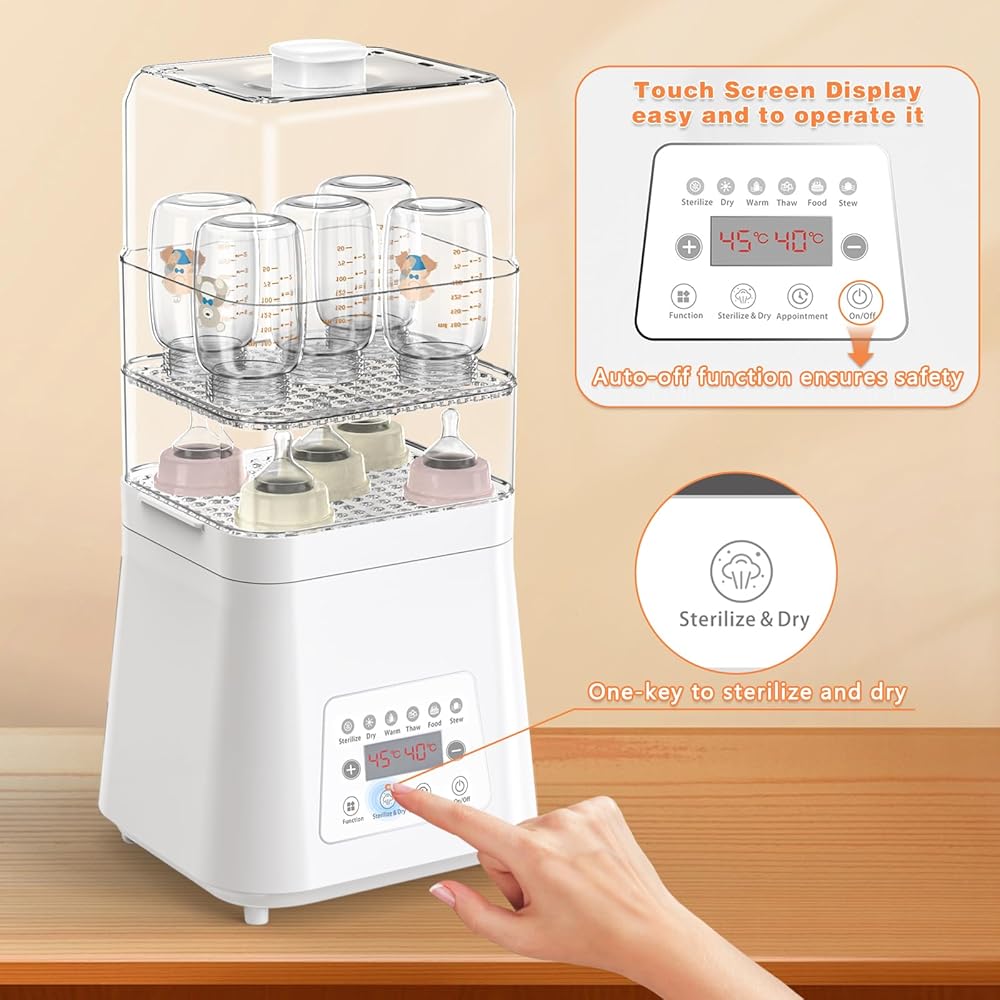 Fisca Baby Bottle Sterilizer and Dryer, 8-in-1 Large Capacity Electric Steam Bottle Sanitizer Universal for All Baby Stuffs Pacifiers Breast Pump Parts, Fast Sterilize Dry and Warm, with Touch Screen