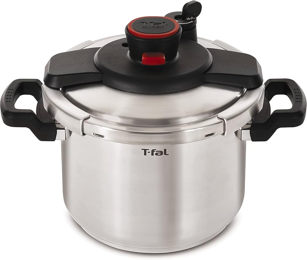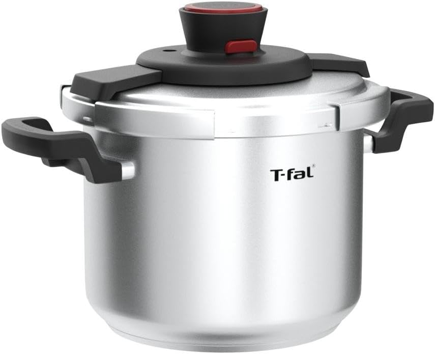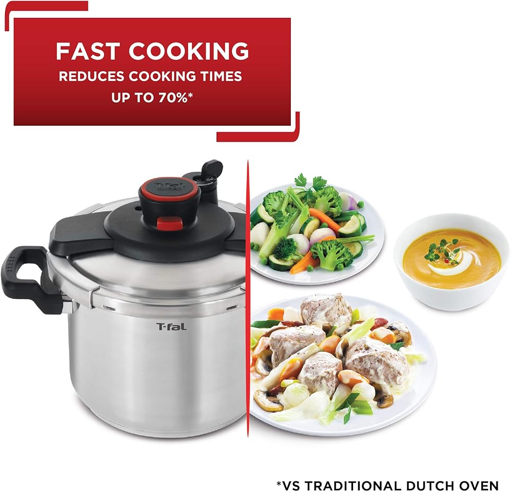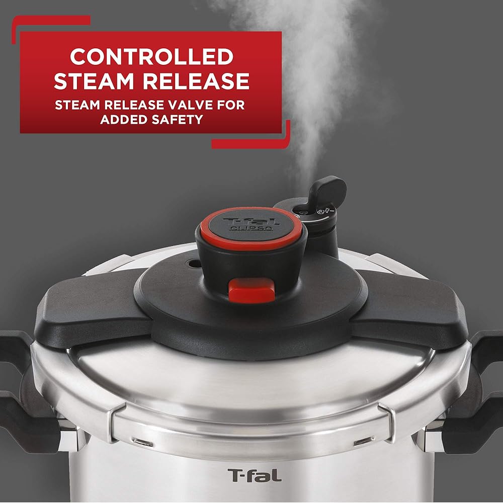 T fal Pressure Canner, Pressure Cooker with 2 Racks and 3 PSI Settings, 22 Quart, Silver, Model 931052. With its roomy 22 quart capacity, this T fal polished aluminum pressure cooker and canner offers exceptional convenience in the kitchen. By combining heat, steam, and pressure, it efficiently cooks a wide range of healthy, delicious, home cooked meals in a fraction of the time up to 70 percent faster than conventional cooking methods, without losing essential nutrients or flavor. Cook for a crowd, create large batches for make ahead meals, or capture summer's bounty for enjoyment year round by canning fruits and vegetables. When canning, the cookware can hold 16 pint size jars, 26 half pint size jars (when double stacked) or 7 quart size jars at a time. The stovetop cookware's heavy gauge aluminum construction heats quickly and offers rustproof performance for long lasting use. Choose from three cooking pressure options 5, 10, or 15 PSI. The cooker's selective pressure control maintains a steady internal pressure, while its vent tube in the center of the lid allows for proper steam release. For added safety, the cookware's backup steam release components include a reusable overpressure plug (the red pin in center pushes out, releasing steam), and if more release is needed, the cookware's gasket release window will push out from the lid opening. In addition, a spring safety device prevents the pressurization of the cooker before being securely closed, and a sure locking lid system prevents opening the lid when the cooker is pressurized. A cooking rack comes included to prevent food from sticking to bottom and to raise jars up off bottom, along with a user guide with recipes for getting started. The T fal 22 quart polished aluminum pressure cooker and canner makes a great choice for novice and experienced cooks and canners alike.