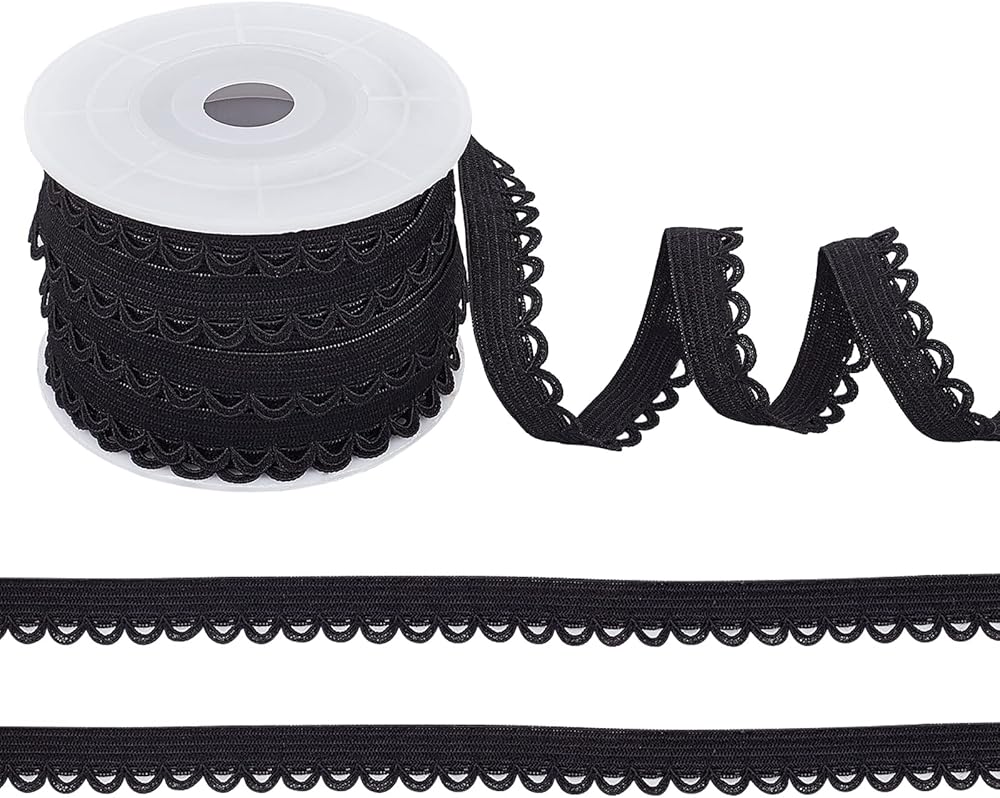 Delicate Lace Elastic Cord -- Made of nylon polyester fabric with elastic trim edges with lace ruffles, beautiful and elegant, soft to the touch, comfortable against the skin, and stretchy, perfect for sewing projects.
