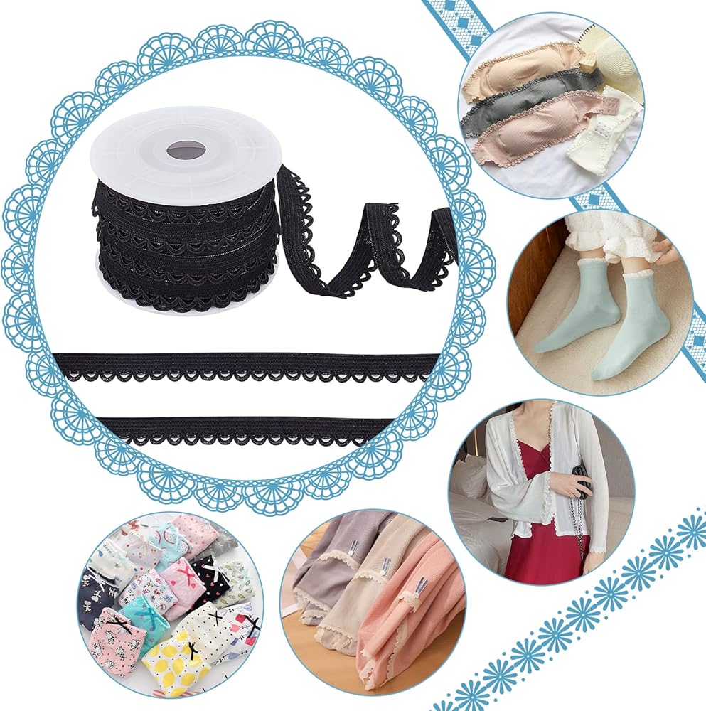 Perfect for Clothing Accessories -- Can be used for garment trimming. Sew lace elastics, make headbands, hair accessories, lingerie elastics, bras, suspenders, thongs, skirts, lace stockings and more to add a touch to your outfit.