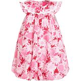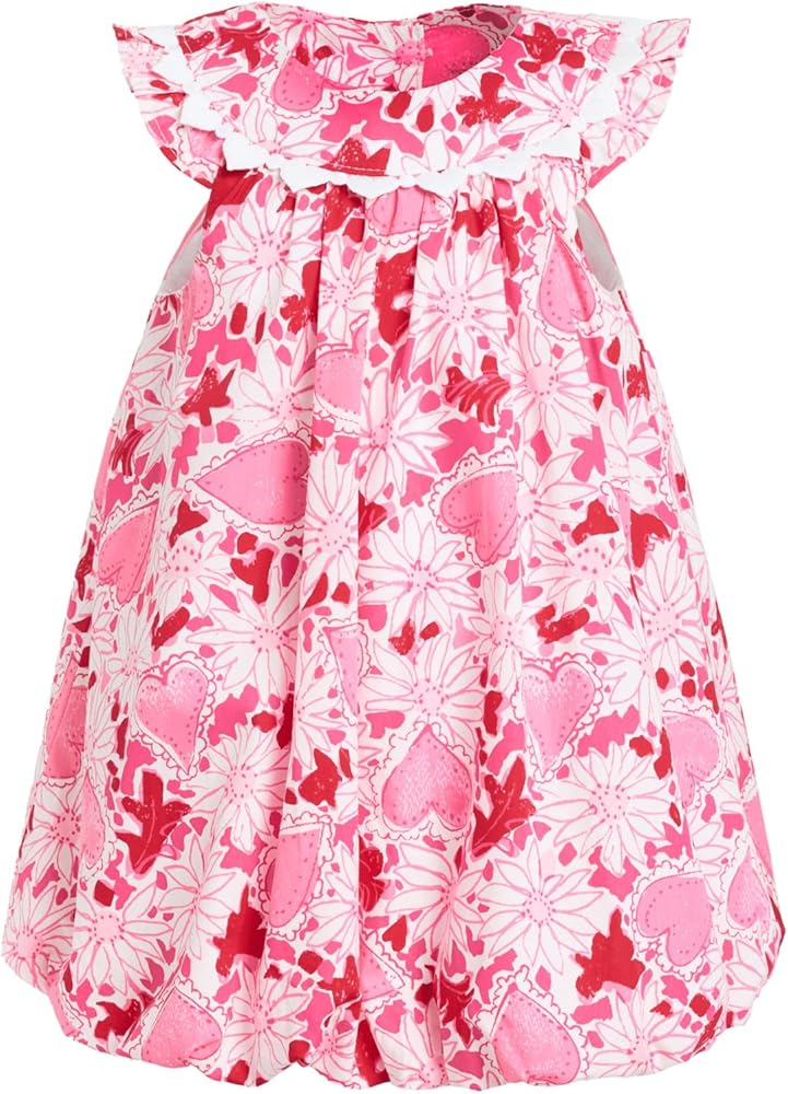 Infant bubble dress with ruffle sleeves and top applied lace details. Matching bloomers