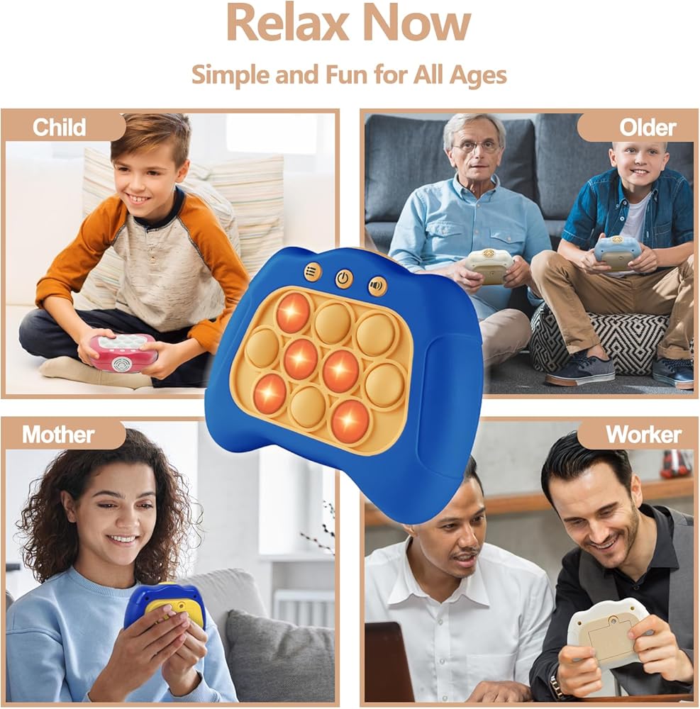 【مثالية للترابط العائلي أو تخفيف التوتر】وحدة التحكم في الألعاب الحسية هذه ليست مخصصة للأطفال فقط؛ إنه خيار ممتاز للترابط العائلي أو الترفيه في الحفلات. فهو يجعل اللاعبين أقرب ويعزز الروابط العاطفية من خلال اللعب السريع والجذاب. بالإضافة إلى ذلك، بالنسبة للبالغين، فهو بمثابة أداة مبهجة لتخفيف التوتر، مما يجلب الفرح والاسترخاء.