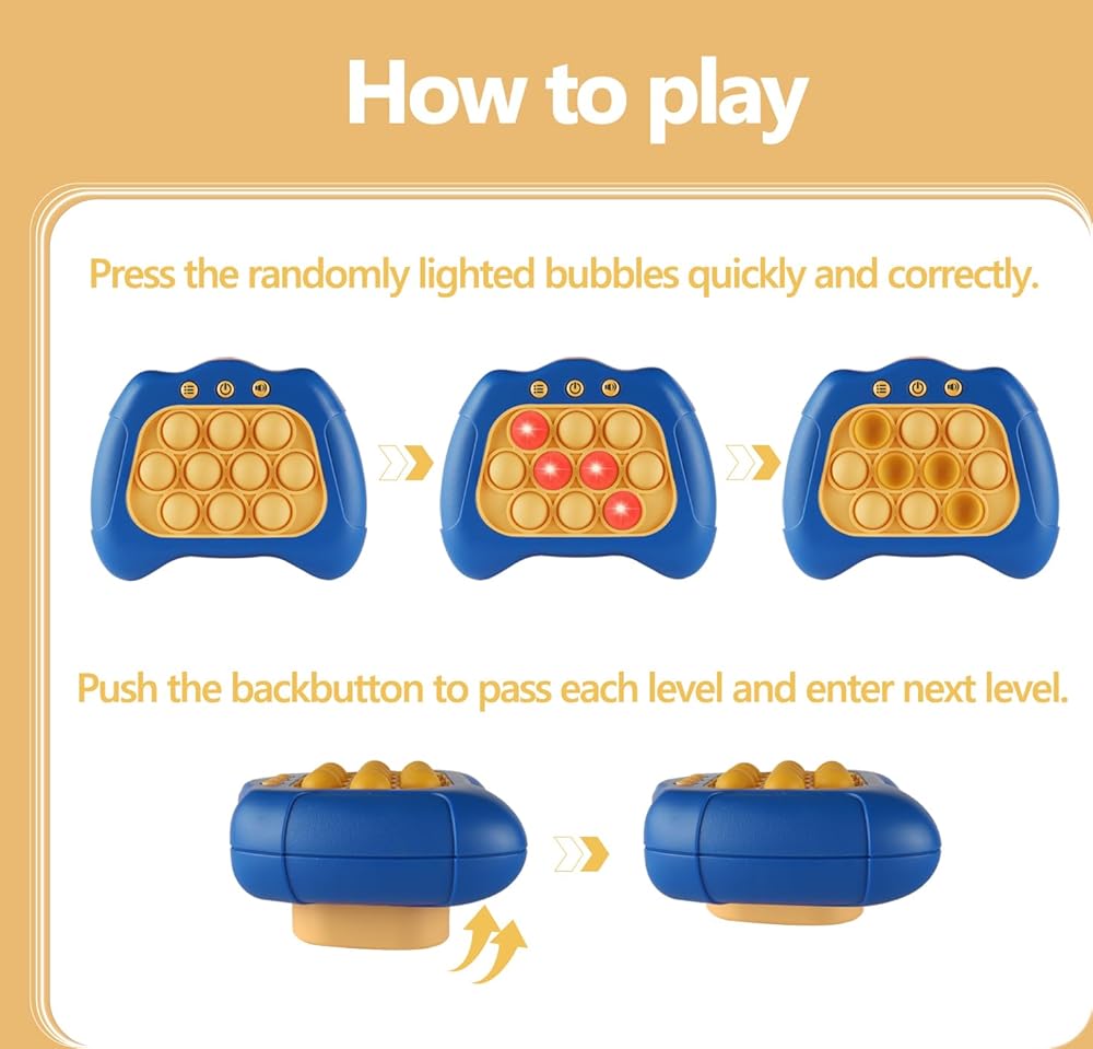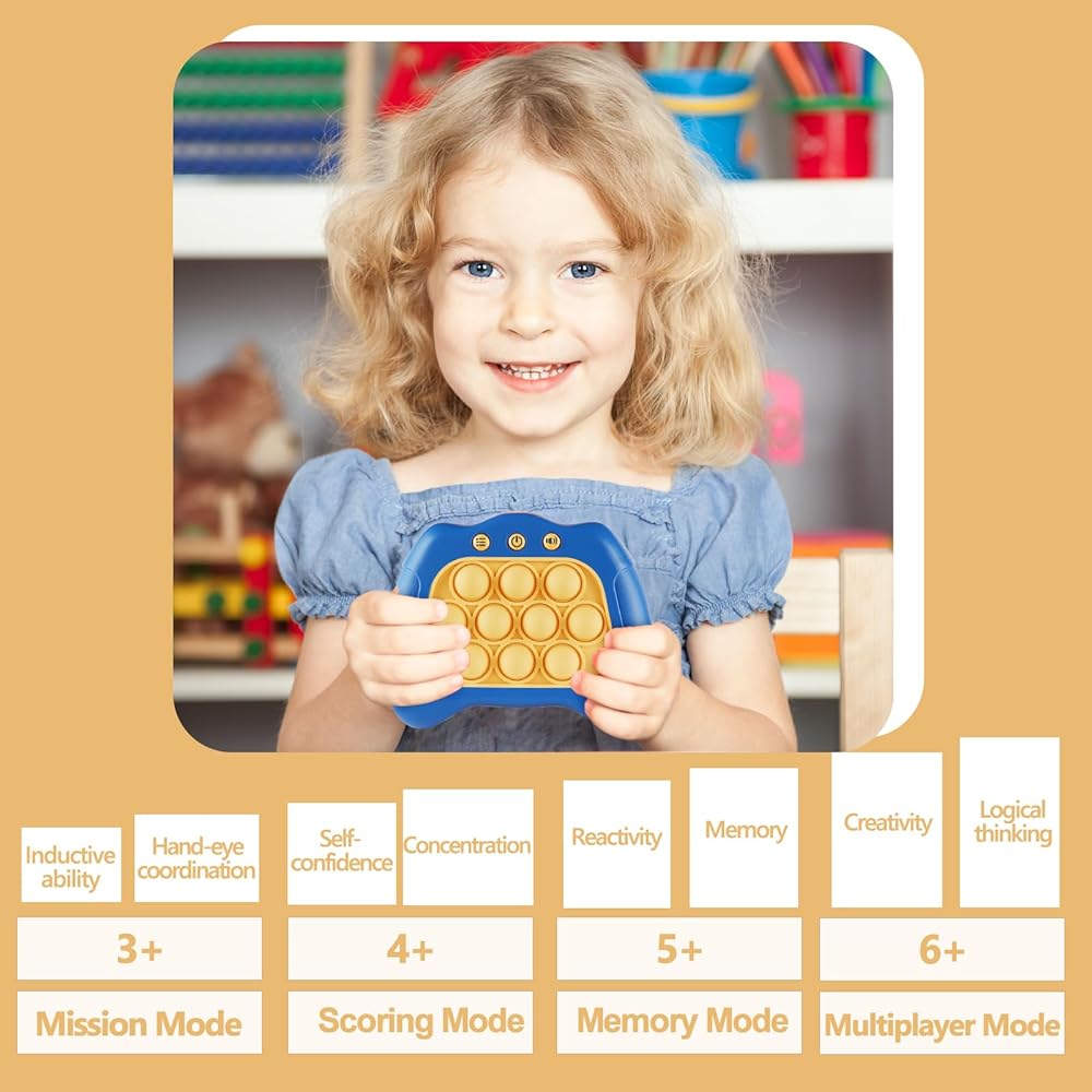 【لعبة صغيرة محمولة】يمكن لآلة ألعاب البوب الأحدث هذه اختراق المستويات عن طريق الدفع بسرعة. سوف ينخرط الأطفال في التفكير الإيجابي، والتنسيق بين اليد والعين، وتدريب الدماغ أثناء تحديات اللعب المليئة بالأضواء والأصوات، مما يعزز النمو الحسي لطفلك.