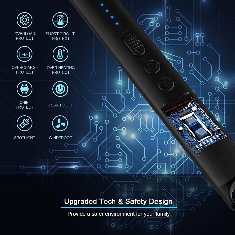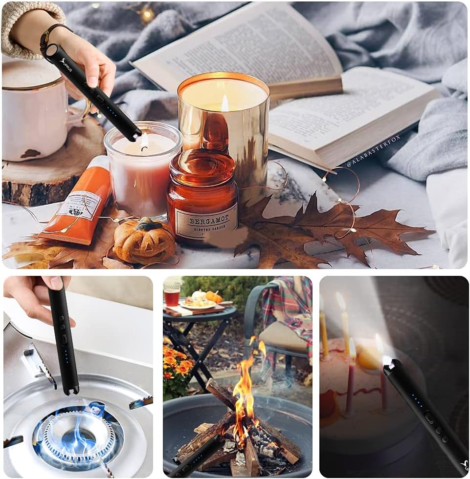 【Windproof & Splashproof】 The arc lighter adopt flameless plasma technology, this technology will protect the electric pulse from being blown out by strong wind, perfect for candles, BBQ, grill, fireworks, kitchen stove and bonfire party.