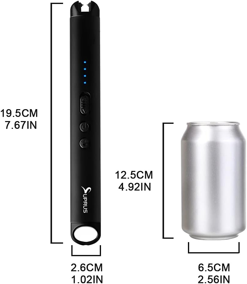 SUPRUS Candle Lighter with LED Torch Arc Windproof Flameless Lighter USB Rechargeable Lighter with LED Battery Display for Candle, Fireworks, BBQ, Kitchen, Grill (Black)
