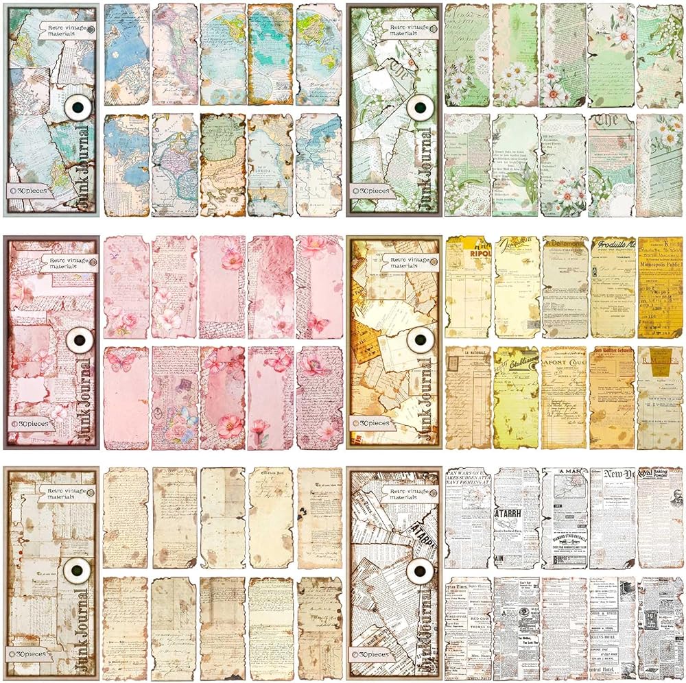 Abundant quantity: This scrapbooking supplies includes 6 sets of vintage background material paper, each set with 10 patterns 30 pieces, totaling 180 sheets, the size is approximately 18x8 cm/7x3 inches, meeting your needs.