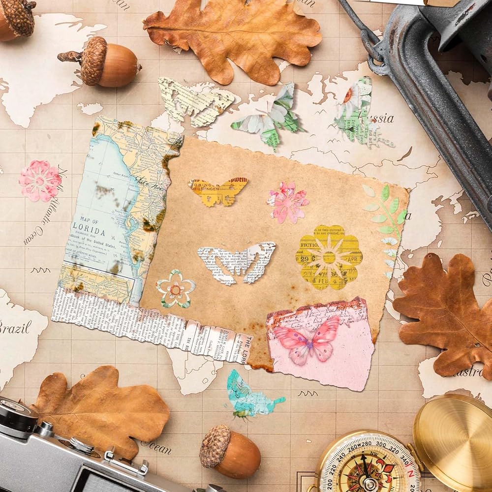 Versatile patterns: The aged scrapbook paper features 6 different styles, patterns including butterflies, flowers, maps, and letters, etc. The variety of elements allows you to create vibrant and diverse decorations for your projects.