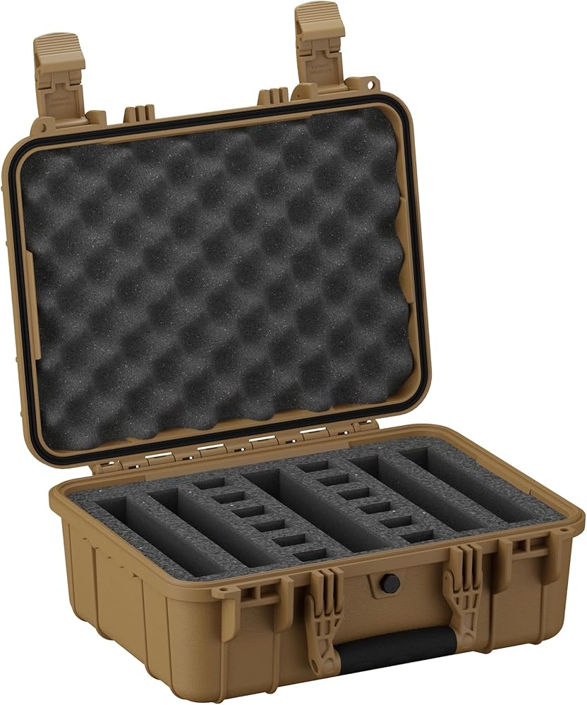 Condition 1 16'' Medium Heavy Duty Waterproof Hard Padded Pistol Case with 4 Slot 12 Mag Pre-Cut Foam - Storage for Accessories Firearms TSA Friendly - 16" x 13" x7" - Black