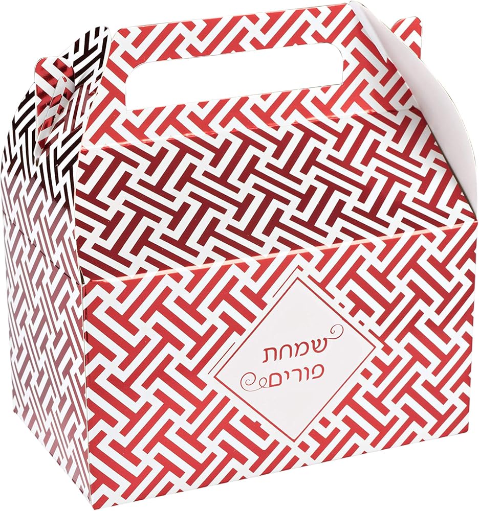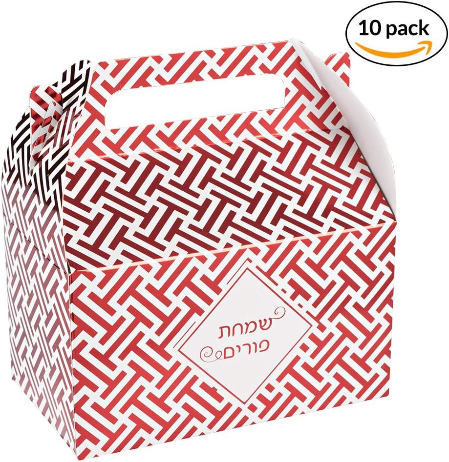 Hammont Foil Purim Treat Box - Red Colored Foil Party Paper Boxes - Attractive Design Perfect for Parties and Occasions | 6.25" x 3.75" x 3.5" (10 Pack)