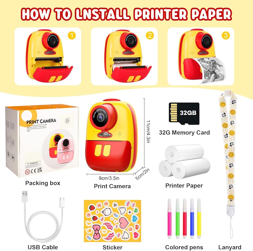 📸 EASY TO USE: The supplemental printing paper is suitable for all styles of instant cameras for kids, the installation is very simple, children only need to pay attention to the installation direction of the hot paper and do not expose the hot paper outside the camera case.
