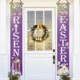 Happy Easter Christian He is Risen Purple Porch Banner Sign, Religious Cross Lamb Front Door Decorative Hanging Welcome Banner Flag, Spring Lily Flower Decoration Home Outdoor Decor
