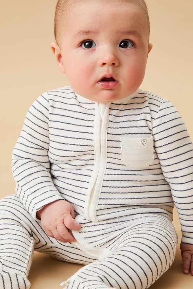 0-3 Months Grey Stripe - Two Way Zip