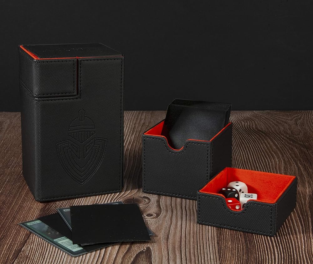 ✔ المقاس - يبلغ مقاس خزانة سطح السفينة 5.6 × 3.5 × 3.7 بوصة وتحمل ما يصل إلى 120 بطاقة ذات أكمام و8 نرد. وهو متوافق تمامًا مع تخزين غالبية البطاقات القابلة للتحصيل.