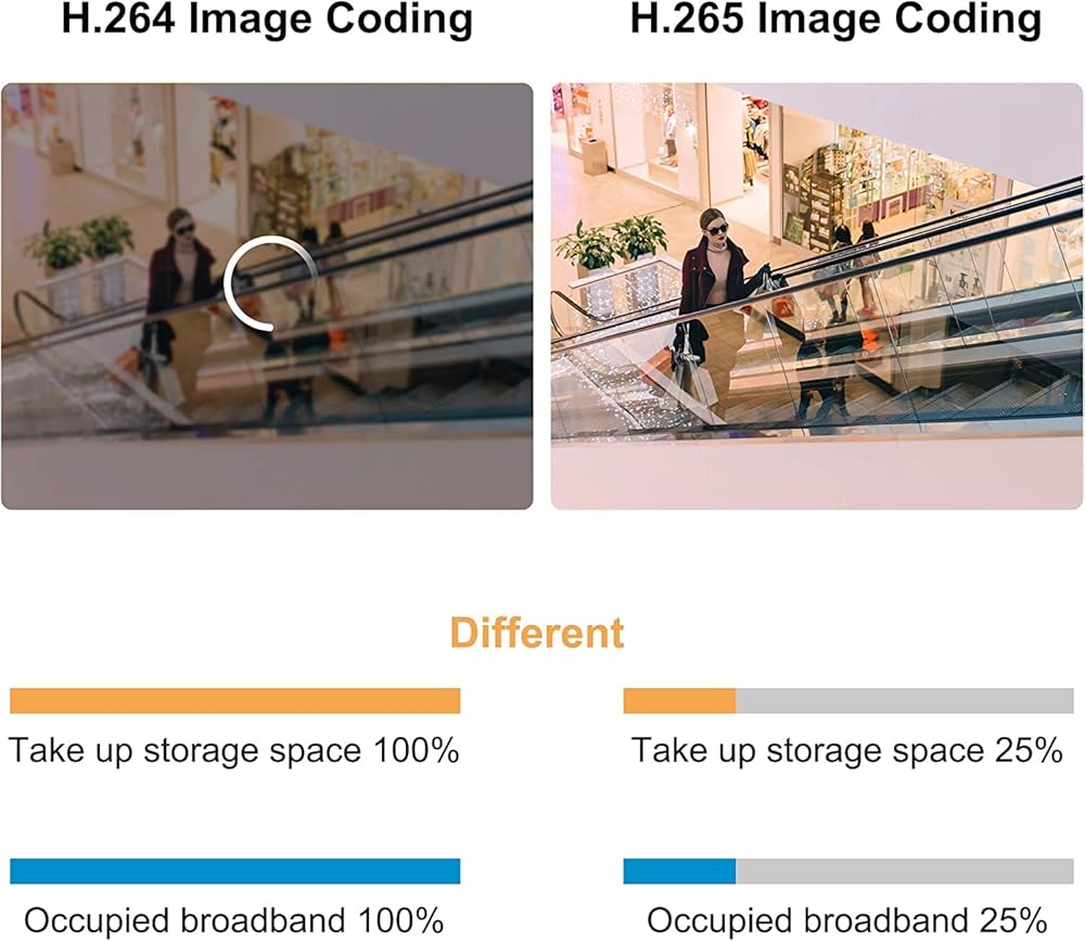 【H.265+ video compression】This 12MP PoE NVR is capable of receiving H.265+ or H.265 or H.264+ video compression files. This feature saves you up to 75% of space compared to H.264 advanced video encoding for more efficient storage and transmission of video content.