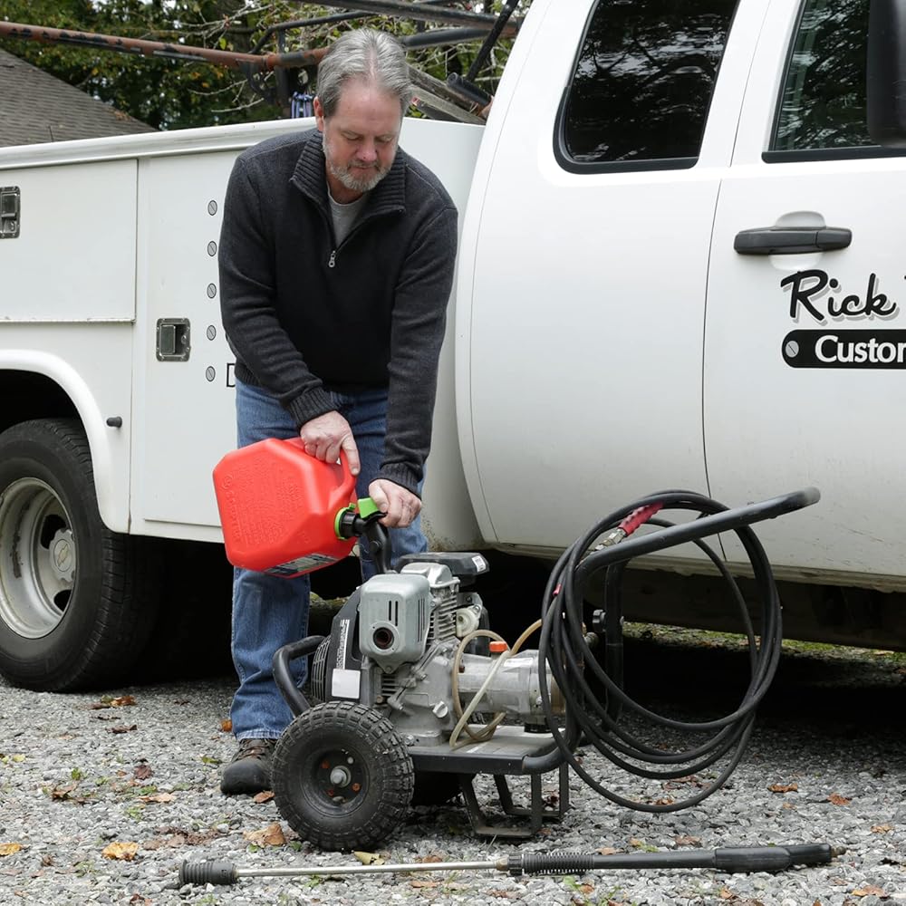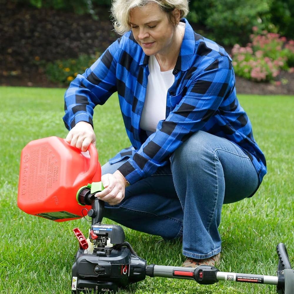 EASY TO POUR GAS CAN – 2-gallon fuel container for easy refilling of lawnmowers, chainsaws, yard tools, recreational vehicles, ATVs, motorcycles, and other gas-powered equipment