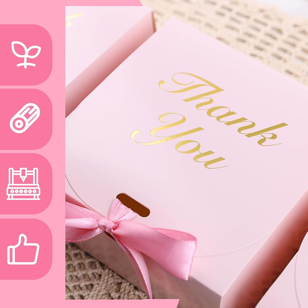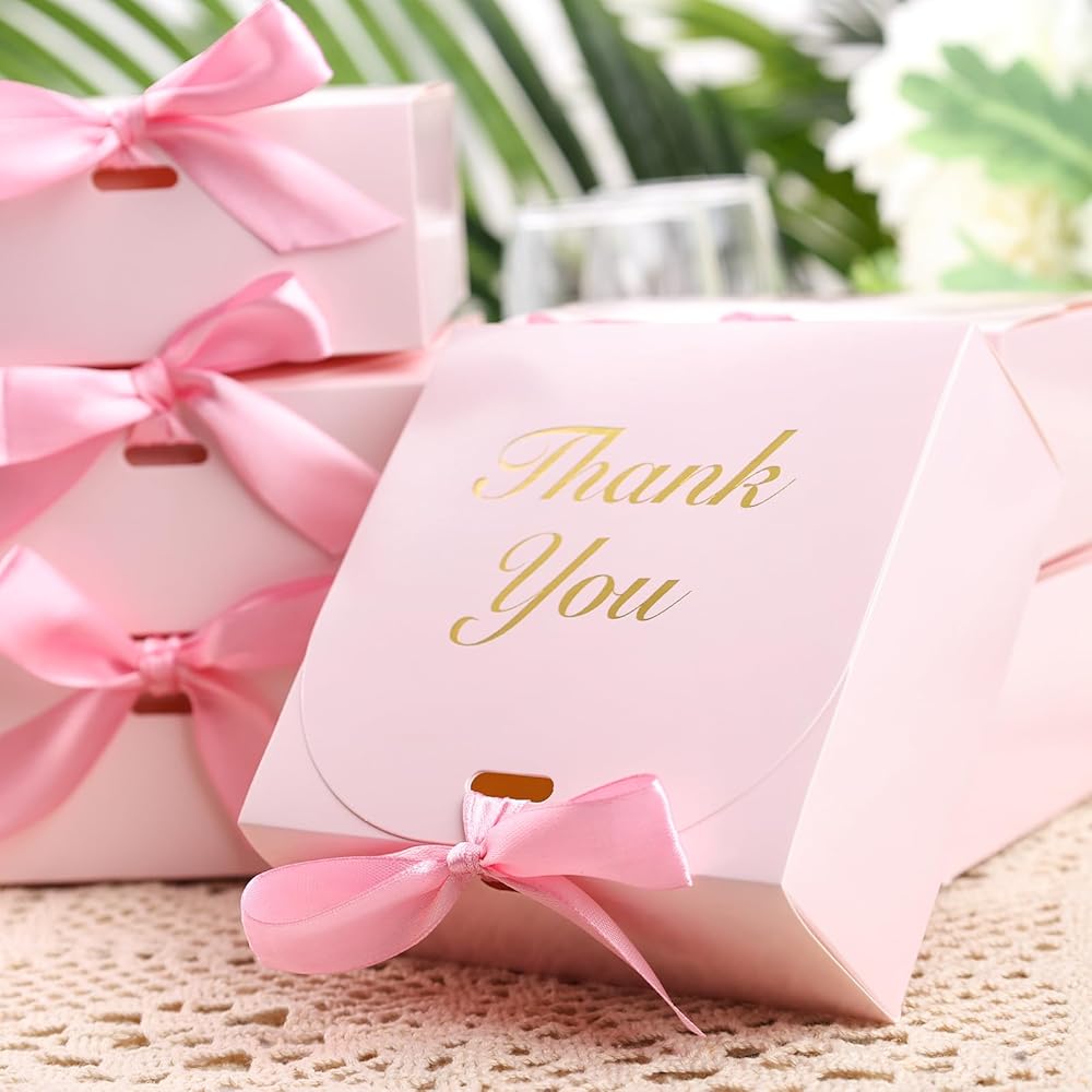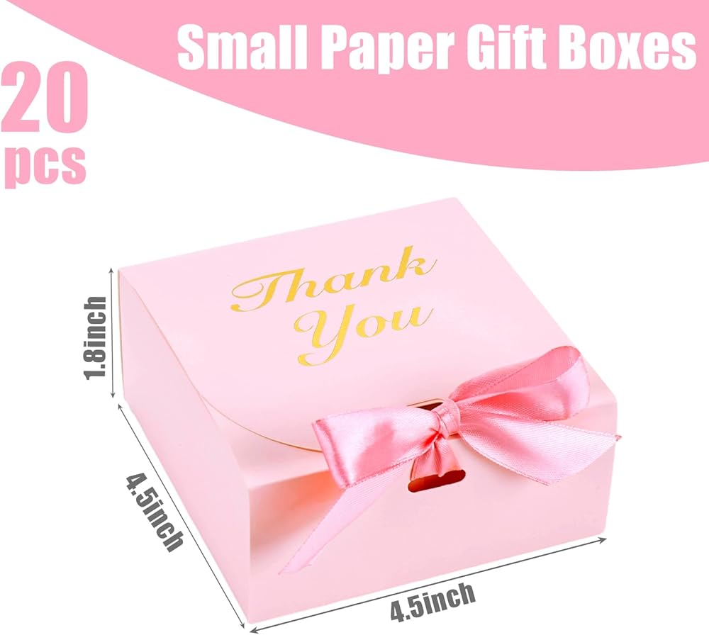 VGOODALL 20PCS Thank You Gift Boxes, 4.5x4.5x1.9Inches Mini Party Favor Boxes Pink Treat Bags with Bow Ribbon for Wedding Bridal Baby Shower Birthday Party