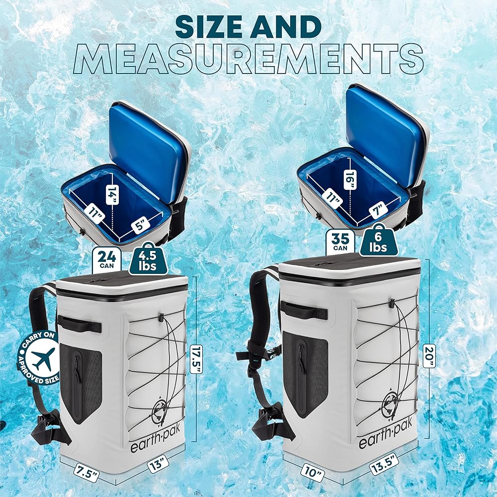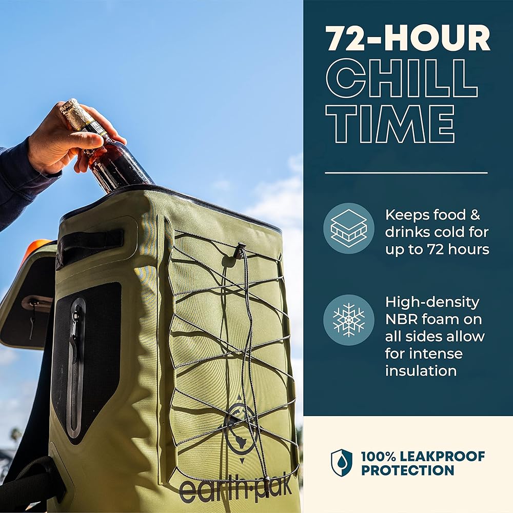 Insulated Backpack Cooler Holds 24 or 35 Cans for 72 Hours - Perfect Lunch or Drink Bag for Camping, Hiking, Fishing, Kayaking, Sports, or Beach - 100% Waterproof Heavy Duty Construction by Earth Pak