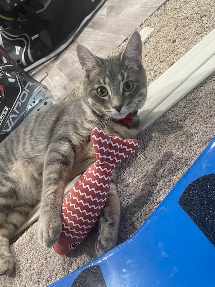 The catnip fish toys for cats are big enough that cat can roll around and wrestle with them but light enough that they can smack them across the floor and re-attack them
