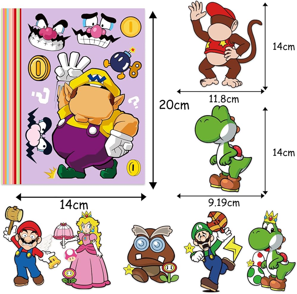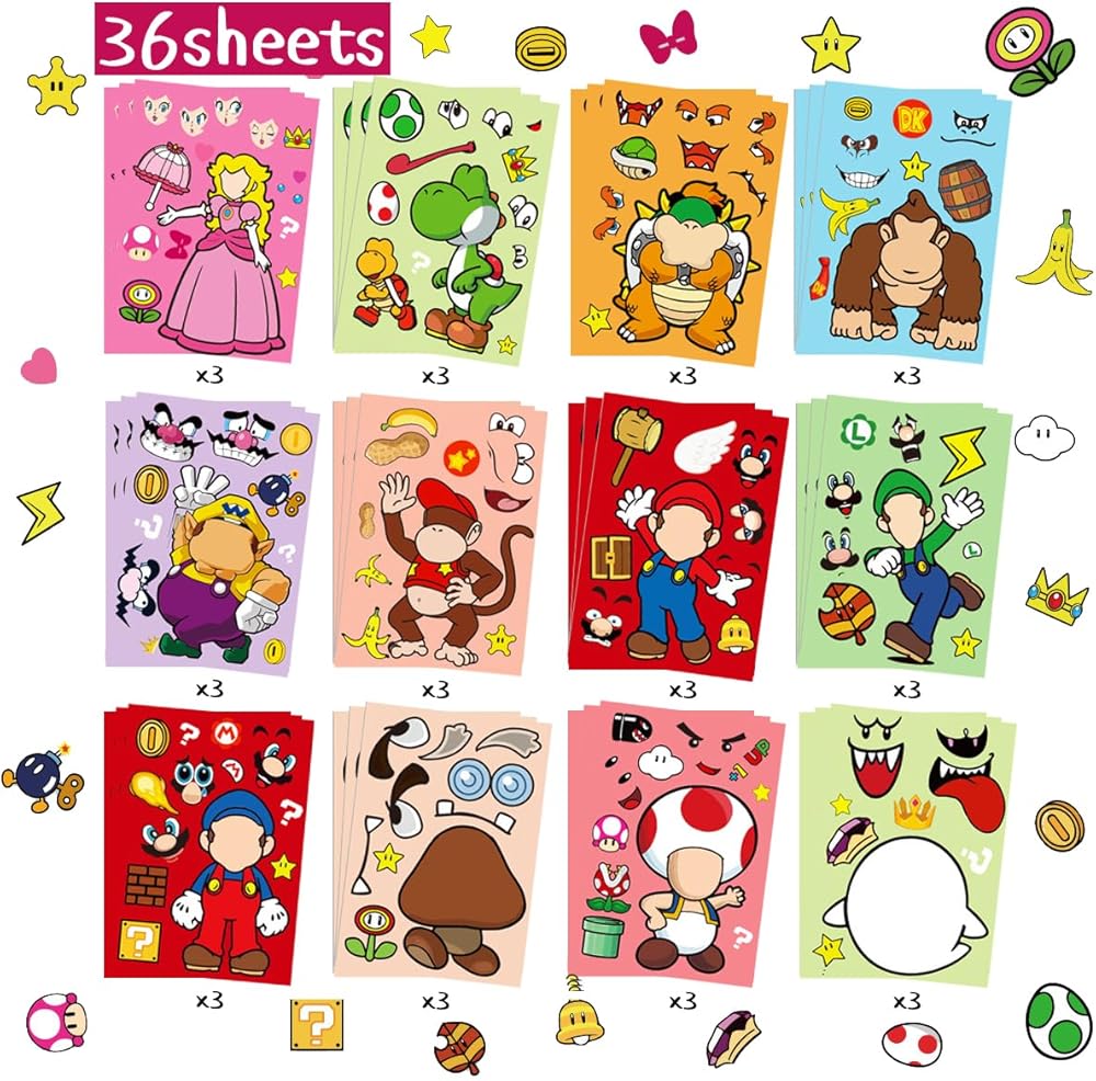 36Pcs Mario Make a Face Sticker Sheets: The pile of lovely making face stickers is great gift for kids. Whether it's birthday decorations, theme parties, Christmas decorations, Children's day gifts, family party celebrations, teachers' classroom awards, etc. You can stick them on any smooth surface or wall, such as living room, bedroom, window, door, table, refrigerator, suitcase, laptop, notebook, invitation card, gift card, thank you card, etc.