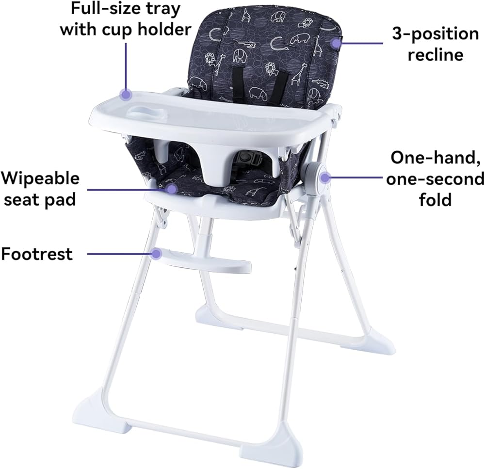 5 Seconds Fast folding high chair, with a one-hand, one-second fold
