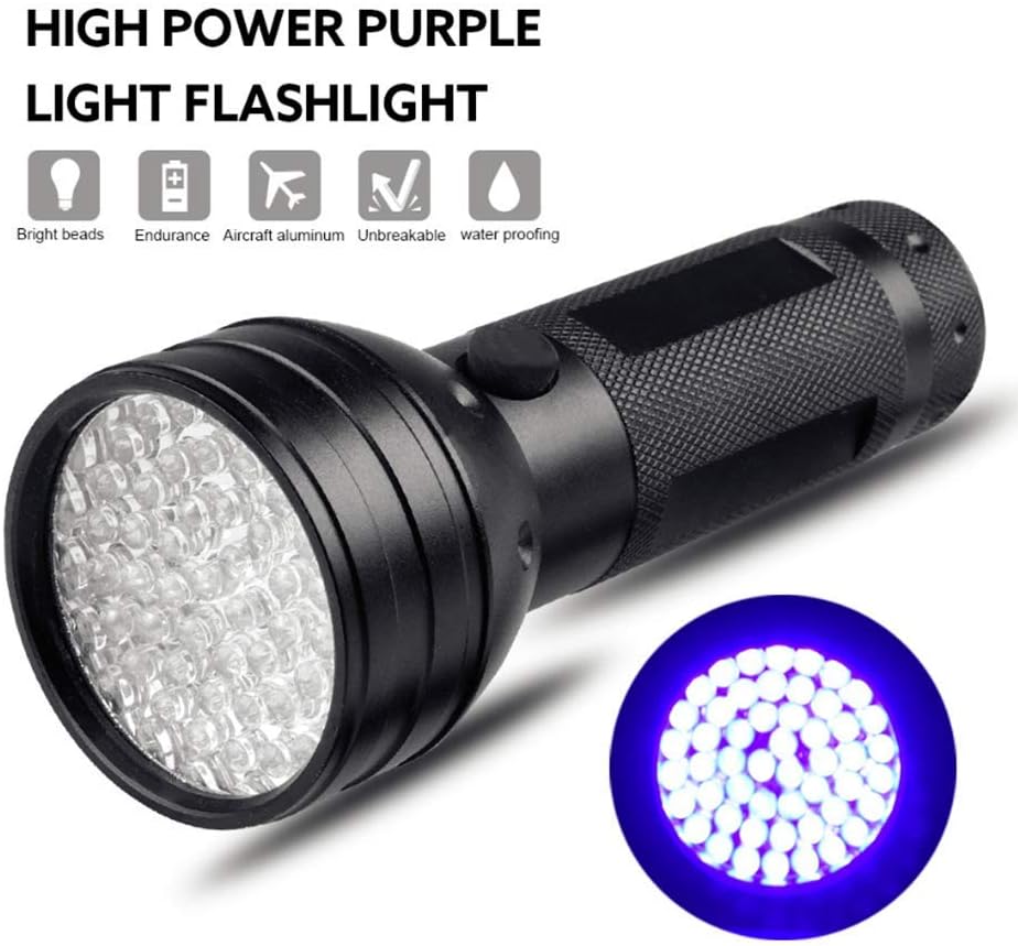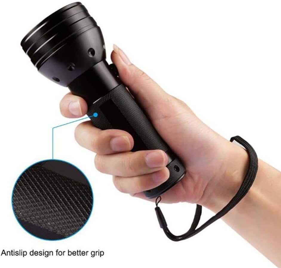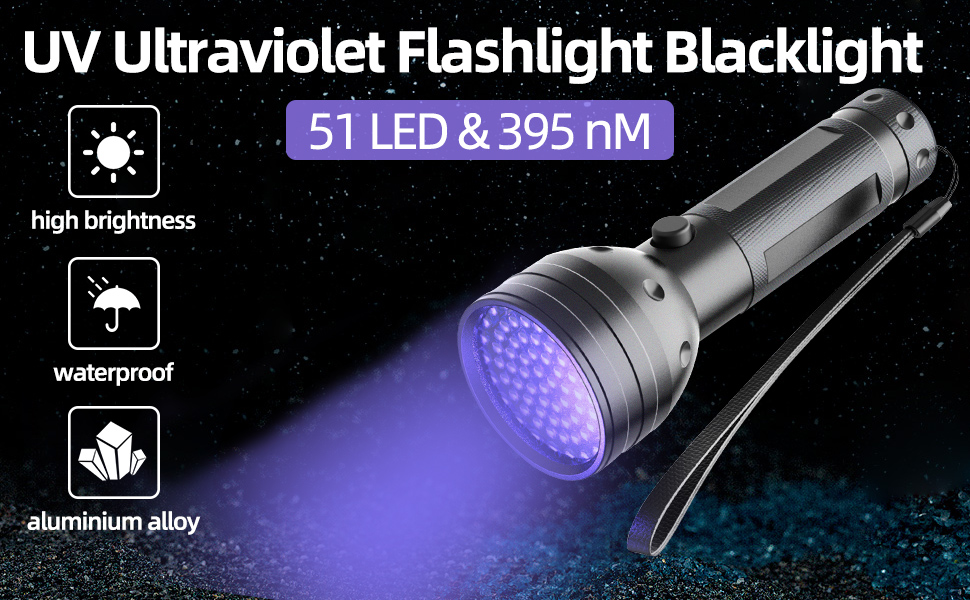- [HIGH BRIGHTNESS]: The 51 LED light in the head of the flashlight, allow you to cover a much bigger area without losing the intensity of the UV light.