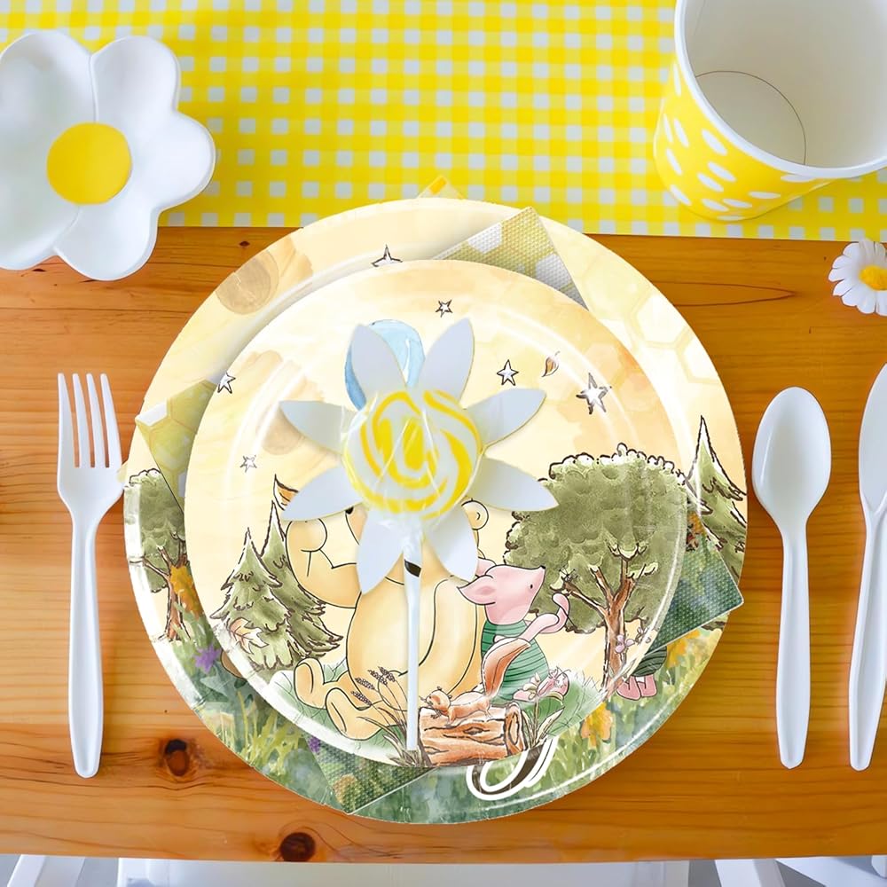 【high-quality】: the pooh bear baby shower decorations plates and napkin sets are made of safe and high-quality material that is thick and durable, suitable for both indoor and outdoor use. high-definition printing, clear patterns, and bright colors. throw a memorable party with pooh bear baby shower decorations, and “wow” your guests. note: do not microwave plates, please.