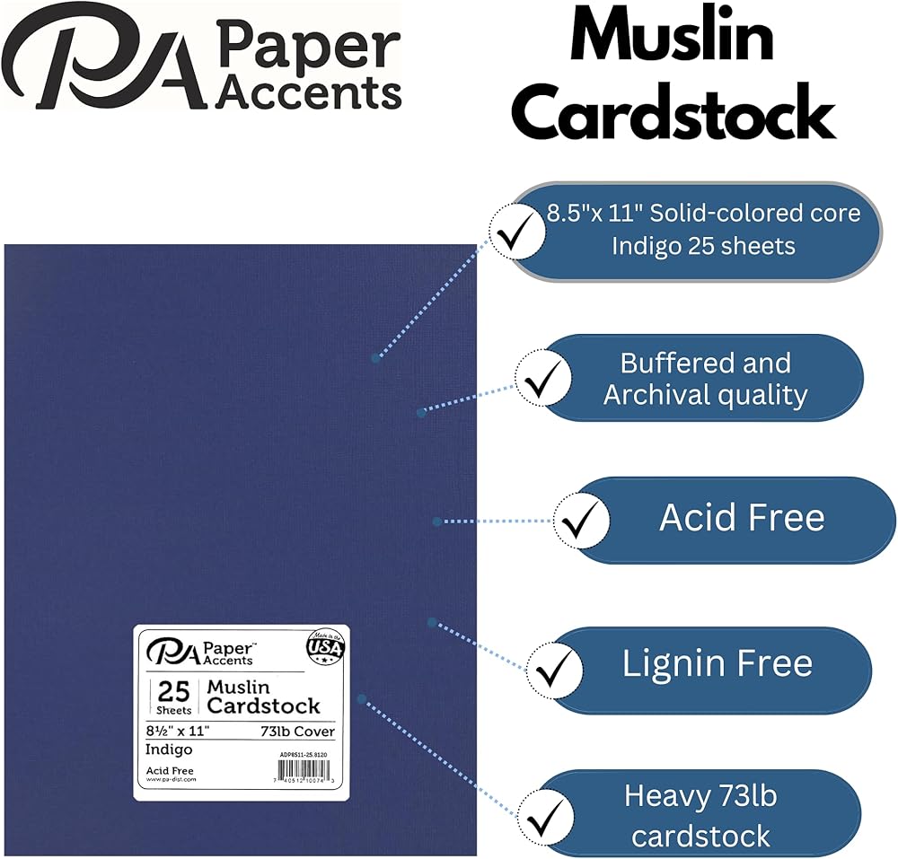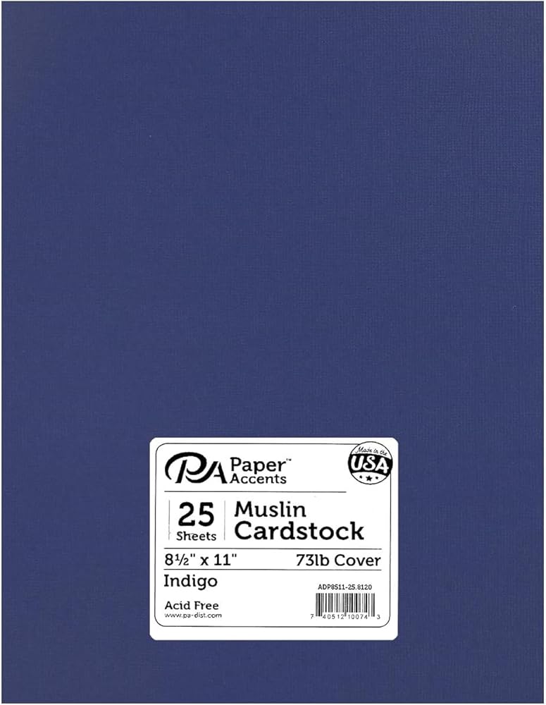 PA Paper Accents Textured Cardstock 8.5" x 11" Indigo, 73lb colored cardstock paper for card making, scrapbooking, printing, quilling and crafts, 25 piece pack