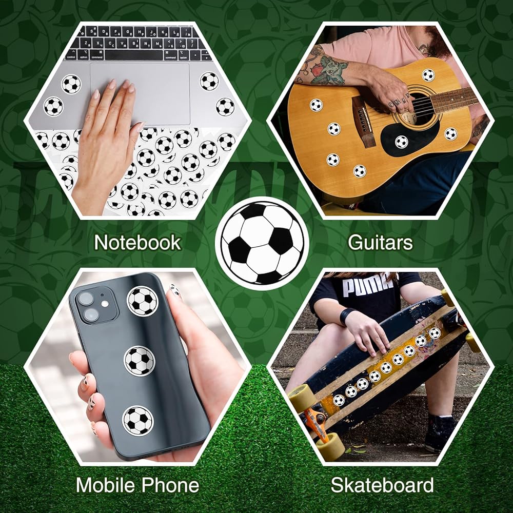 سهلة الاستخدام - ملصقات كرة القدم دون قطعها يدويًا مرة أخرى، يمكن تمزيقها جاهزة للاستخدام. يمكن أيضًا لصق الملصقات الصغيرة على حقيبة كرة القدم الخاصة بطفلك، ولصقها على غلاف الهدايا لفريق كرة القدم، مما يمنح هديتك المزيد من المرح، وتطابق حرفاتك أيضًا!