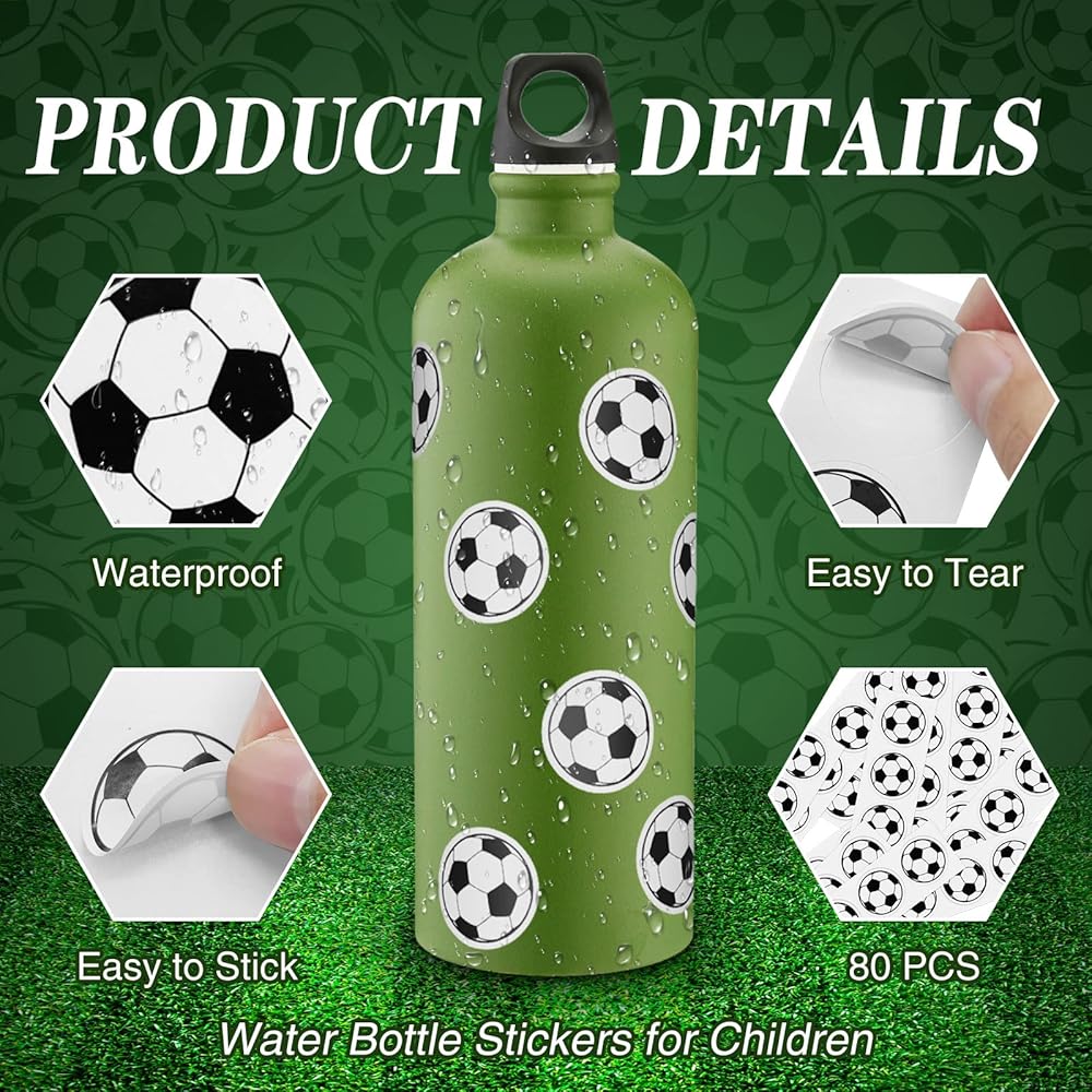 ملصقات حفلات كرة القدم - 80 ملصقًا لكرة القدم كافية لتزيين جميع الأشياء في حفلة كرة القدم الخاصة بك، تعتبر ملصقات زجاجة المياه والوجه خيارات رائعة، تصميم سهل التقشير ومادة الفينيل تجعل ملصقات كرة القدم مقاومة للماء واستخدامها ببساطة، استمتع بحفلة كرة القدم الخاصة بك