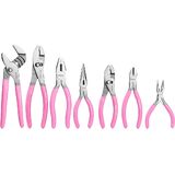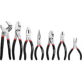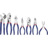 8-inch groove joint, 8-inch and 6-inch slip joint, 7-inch linesman, 6-inch and 4-1/2 inch long nose, and 6-inch diagonal pliers. Covered slushing oil for rust protection. Wipe these pliers before using then store them in a dry environment.